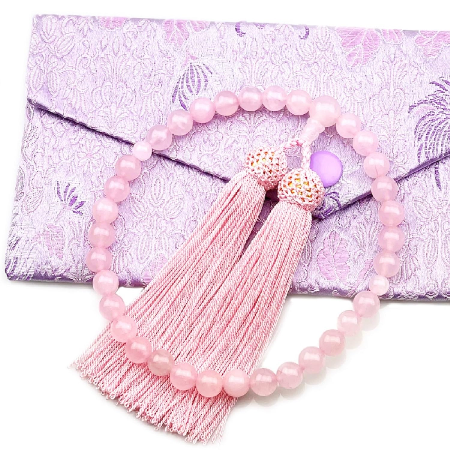 【2022最新】数珠 女性用 紅水晶(ローズクォーツ) 8mm玉 正絹梵天房 数珠袋付き すべての宗派で使える 手作り 念珠 略式数珠 葬儀 葬式 念珠 お念珠 じゅず お数珠 | libertyislan