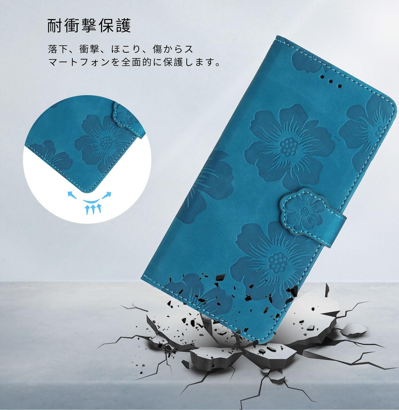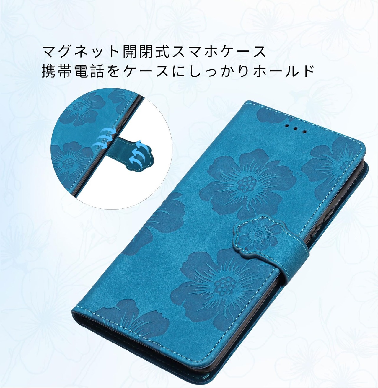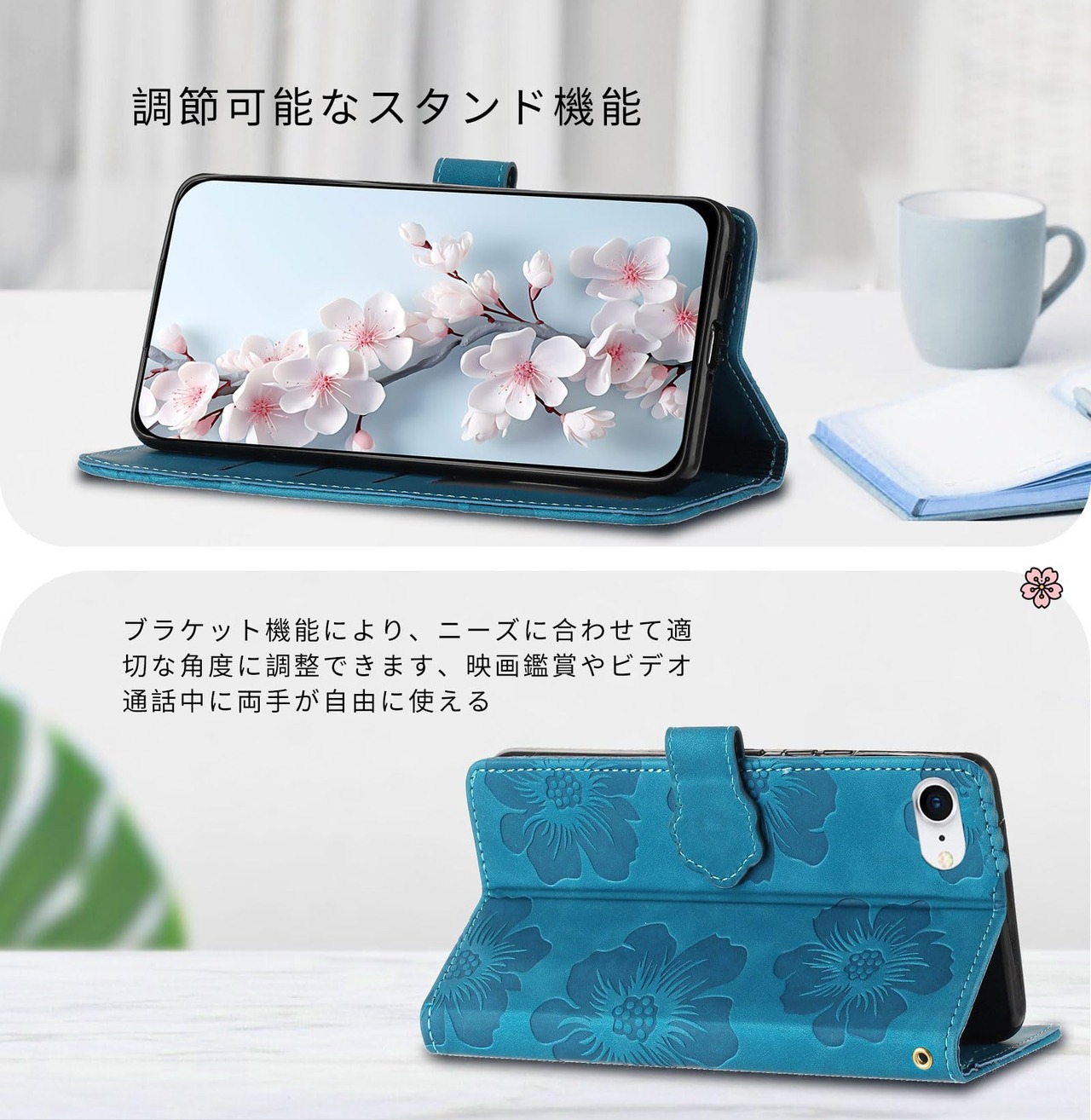 iPhone SE 用 第3世代 ケース 手帳型 iPhone SE2/iPhone 8/iPhone 7/iPhone 6 対応 ケース 財布型 美しい桜の柄 アイフォン SE ケース高級PUレザー アイフォンSE3 ケース カード収納 スタンド機能 iPhone8 用 ケース 手帳型 花柄 マグネット開閉式 (リストストラップ付き)【4.7インチ】 レイクブルー