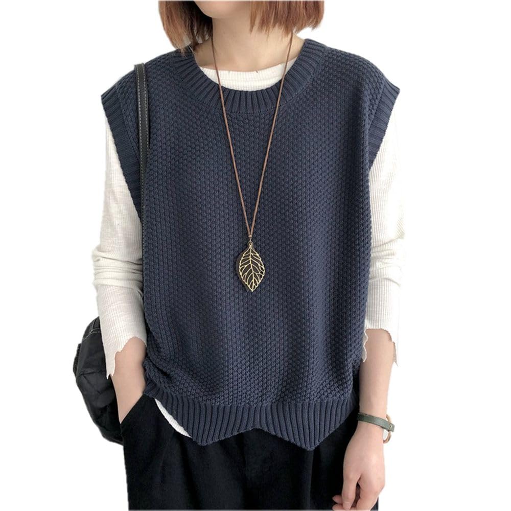 【特価商品】[Grcemlvfe] セーター レディース ニットベスト チョッキ プルオーバー フラクタル ワッフル 丸首 不規則な裾 ゆったり シンプル 着痩せ カジュアル コーディネート 通勤 春 秋 冬 | libertyislan
