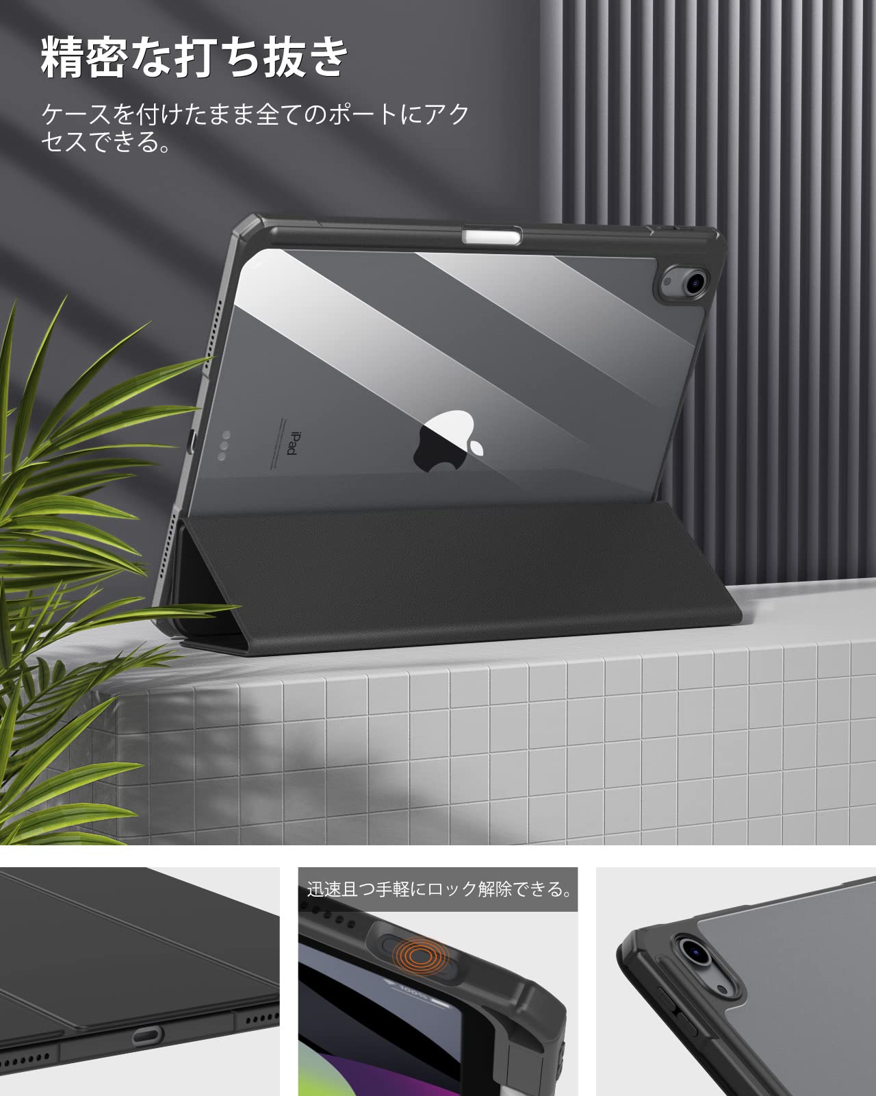 iPad Air 11インチ ケース M3/M2 (2025/2024) iPad Air 第5/4世代 ケース (2022/2020) 10.9インチ TiMOVO iPadair第7/6/5/4世代 カバー 透明バック 薄型 PUレザー ペン収納 キズ防止 三つ折り TPU スタンド 衝撃吸収 オートスリープ機能付き 軽量 耐久 持ちやすい スマートカバー Black