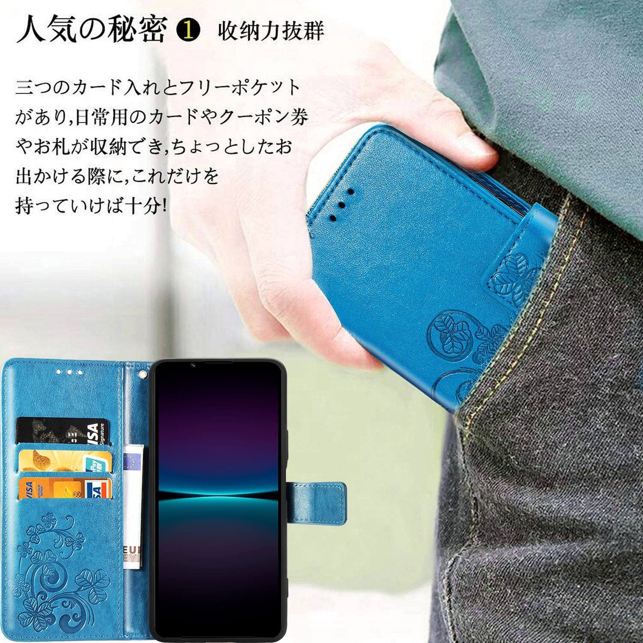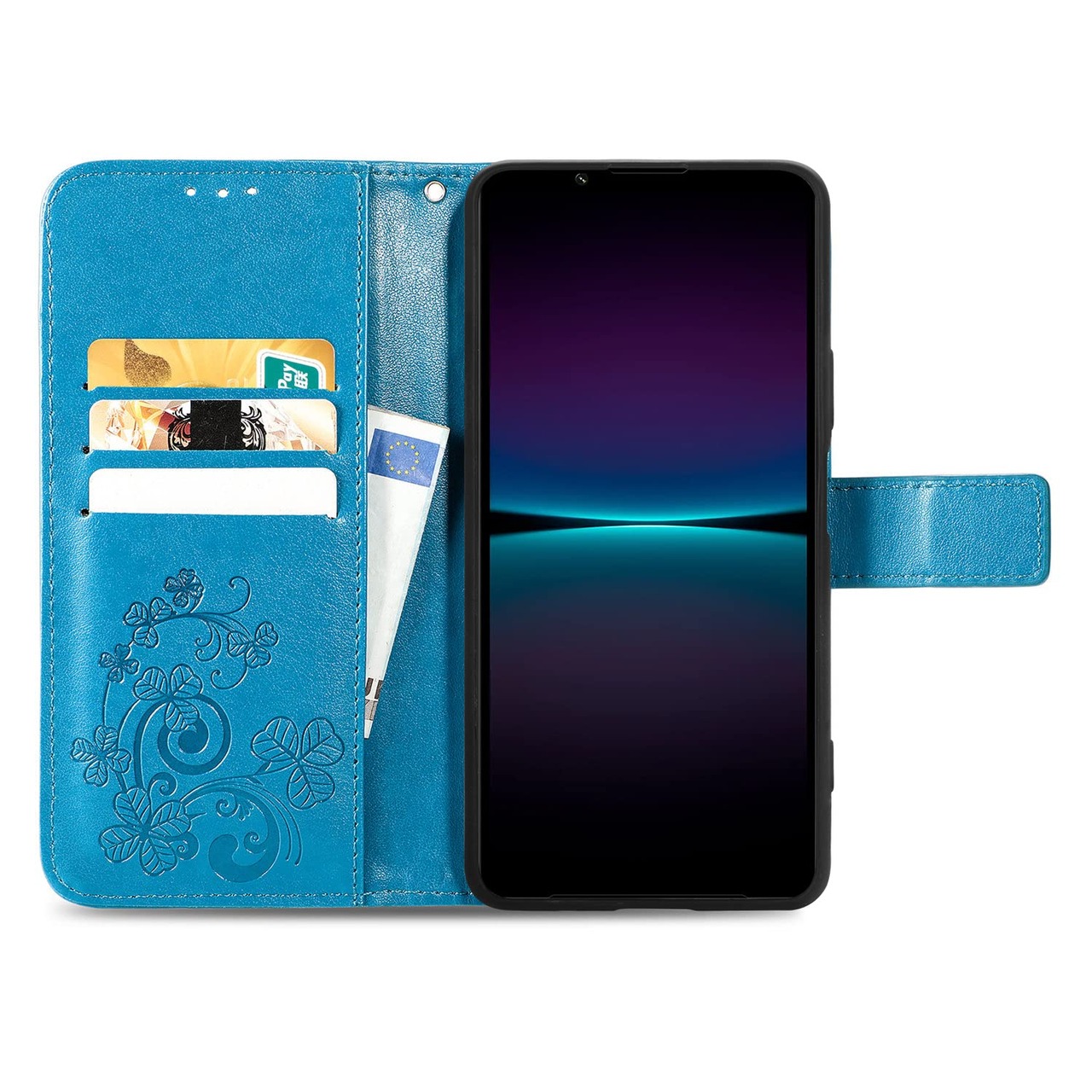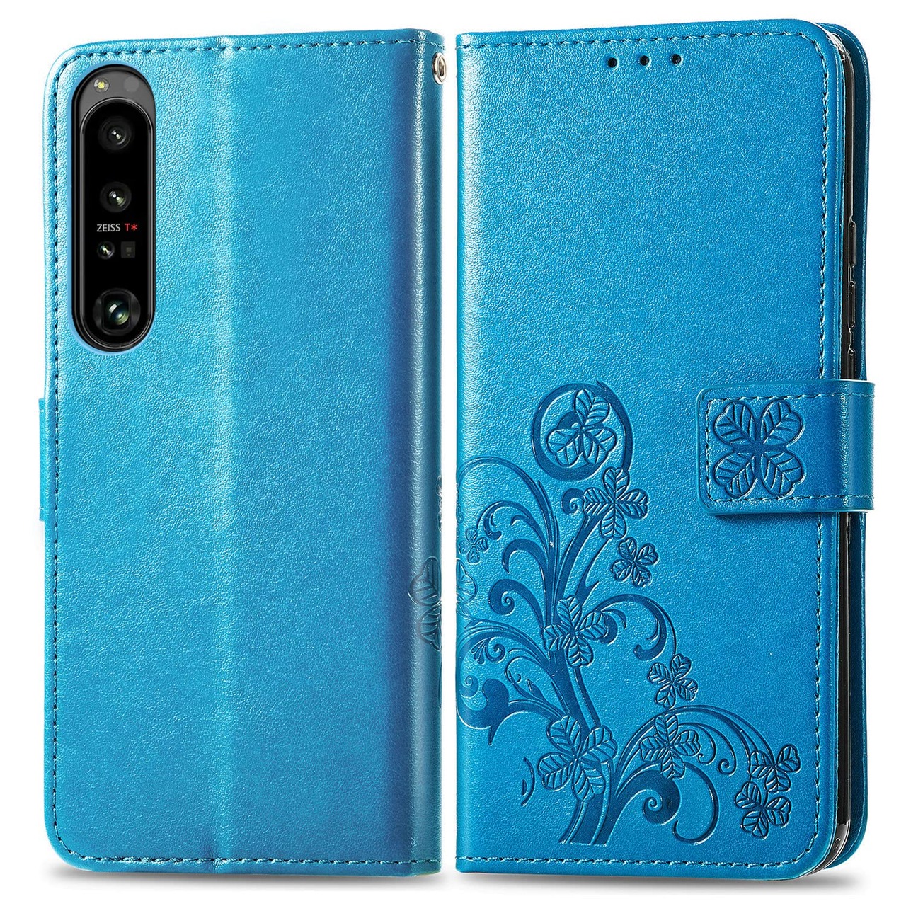 【特価商品】に適用するXperia 1 IV docomo SO-51C au SOG06 softbank A201SO Xperia1 第4世代 ケース 手帳型 ノートブック型携帯電話保護カバー多機能携帯電話ホルスター財布携帯電話ホルダーバンプパターンテクスチャ耐久性摩擦耐性携帯電話ケース男性と女性に適した多色オプション (四つ葉のクローバーブルー)
