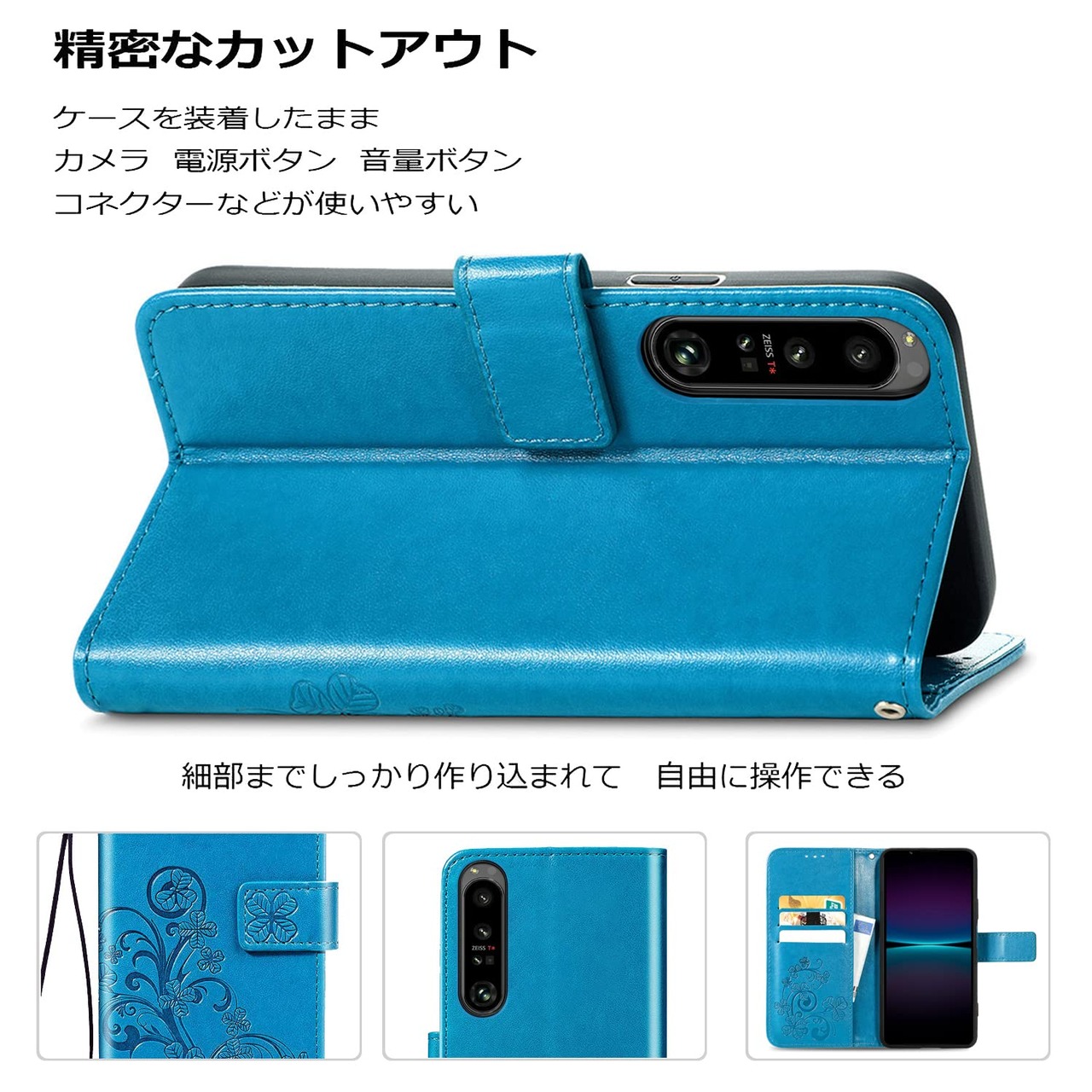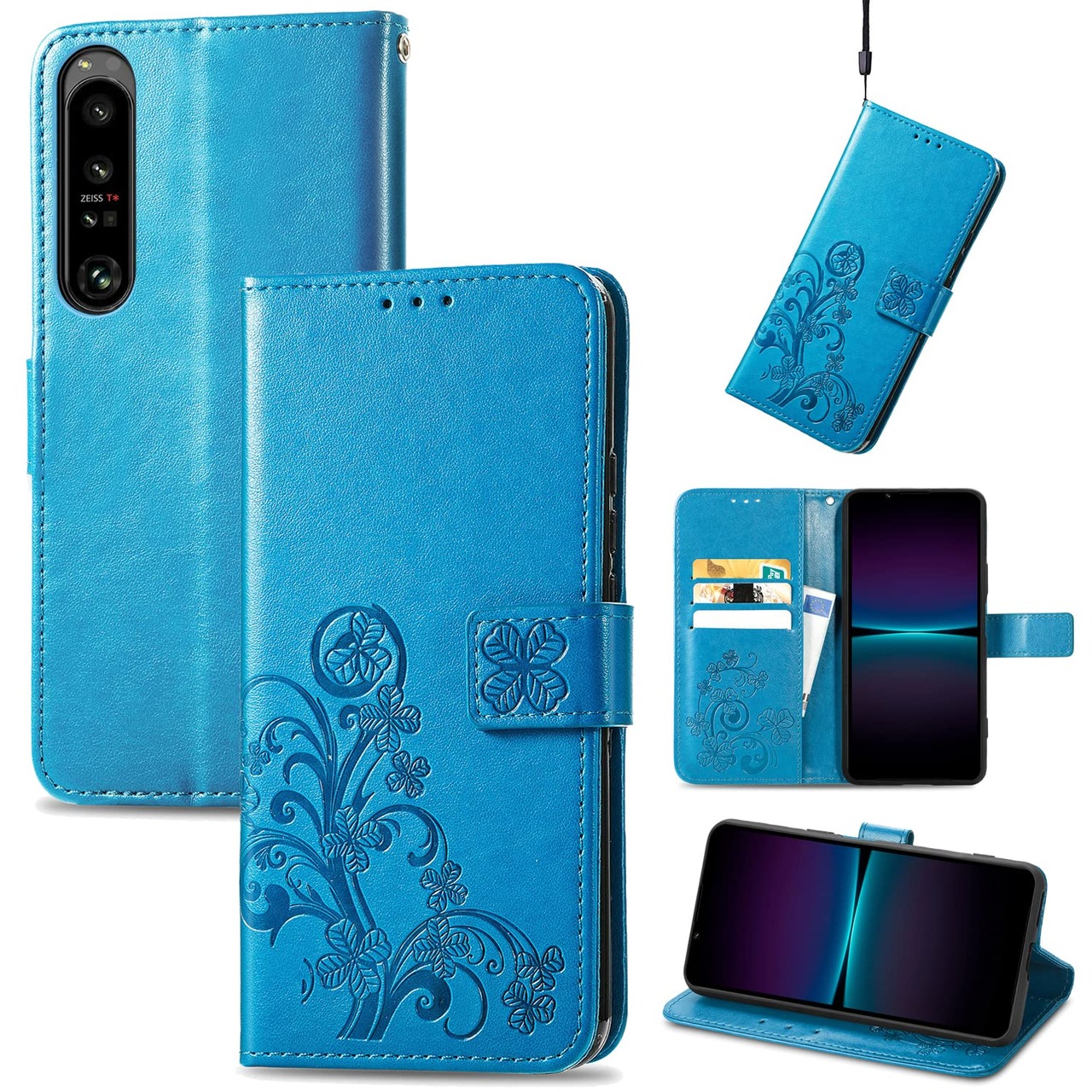 に適用するXperia 1 IV docomo SO-51C au SOG06 softbank A201SO Xperia1 第4世代 ケース 手帳型 ノートブック型携帯電話保護カバー多機能携帯電話ホルスター財布携帯電話ホルダーバンプパターンテクスチャ耐久性摩擦耐性携帯電話ケース男性と女性に適した多色オプション (四つ葉のクローバーブルー)