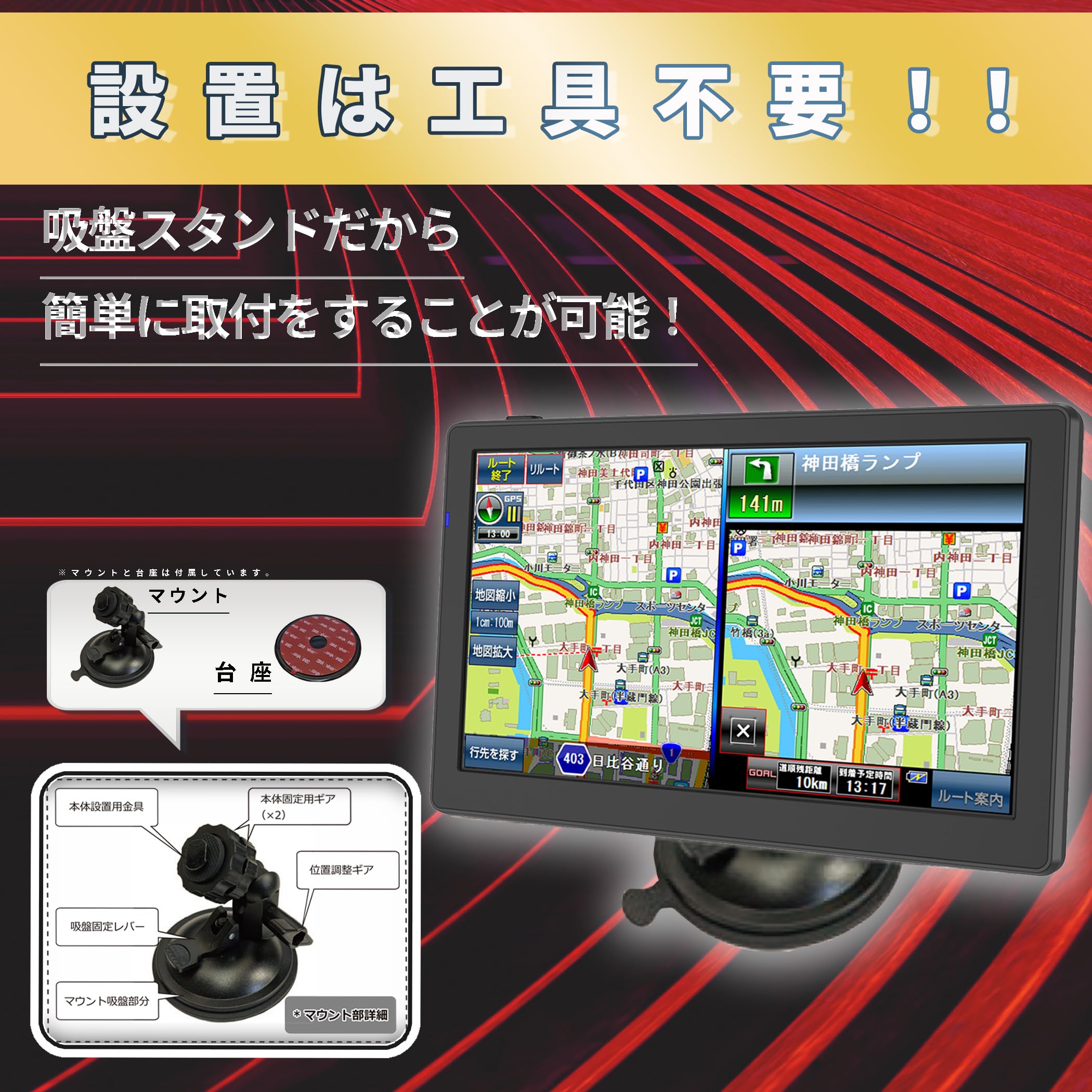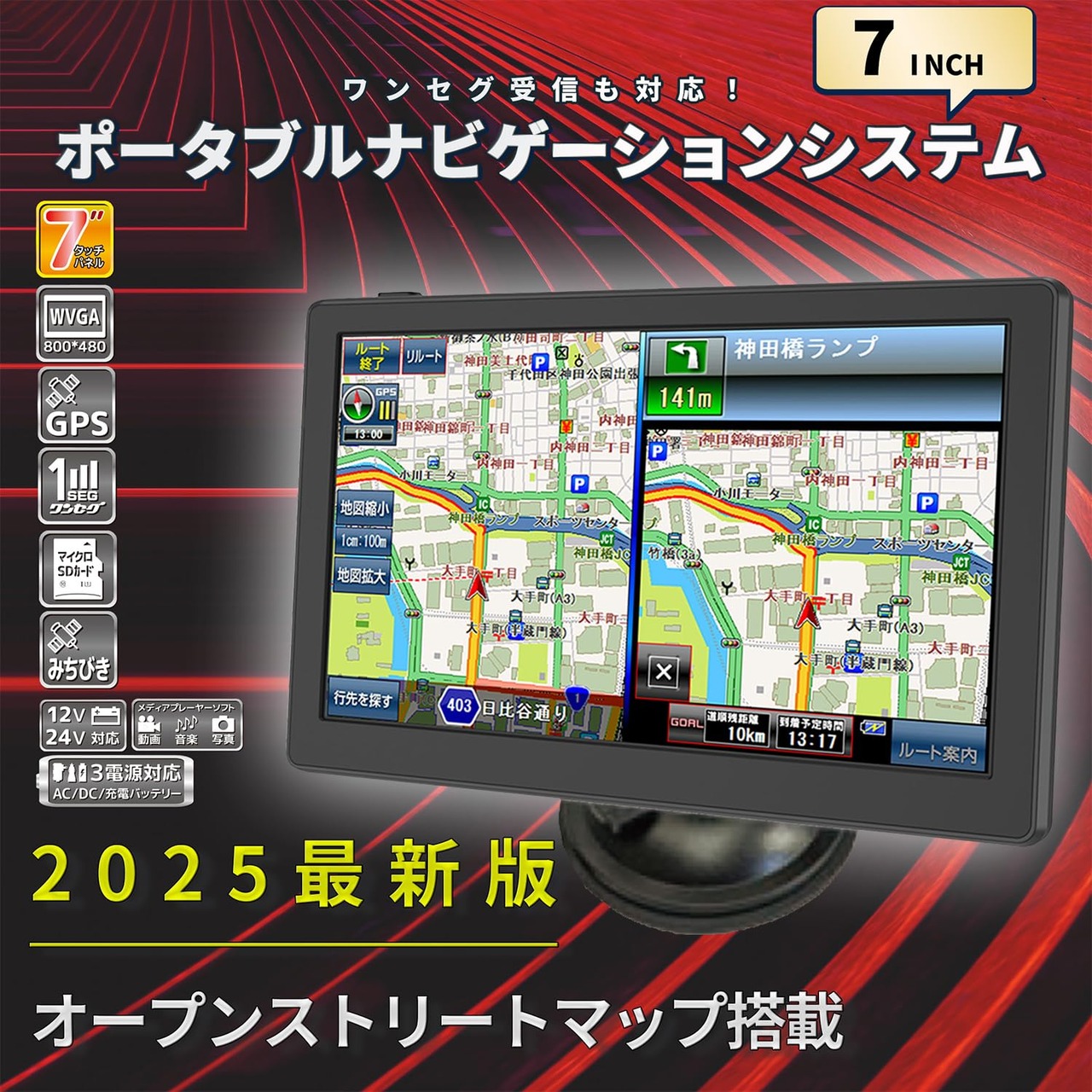 [東京Deco] 7インチ カーナビ 2025 みちびき対応(QZSS) ポータブルナビ ワンセグ対応 2025年地図搭載 録画可能 3電源対応[AC/DC/充電バッテリー] 内蔵電源 タッチパネル式 音楽 動画 画像 写真 データ搭載 車用ナビ 車載 7型 1seg ナビ 12V 24V A014