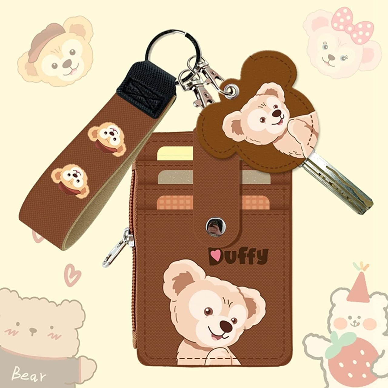 【2022最新】ダフィー ステラルー シェリーメイ ディズニー キャラクター IDカードホルダー パスケース 定期入れ 名札ケース ICカードケース 縦型 コインケース 鍵カバー ストラップ付き 伸縮リール付き 【5枚収納】 【3枚収納】