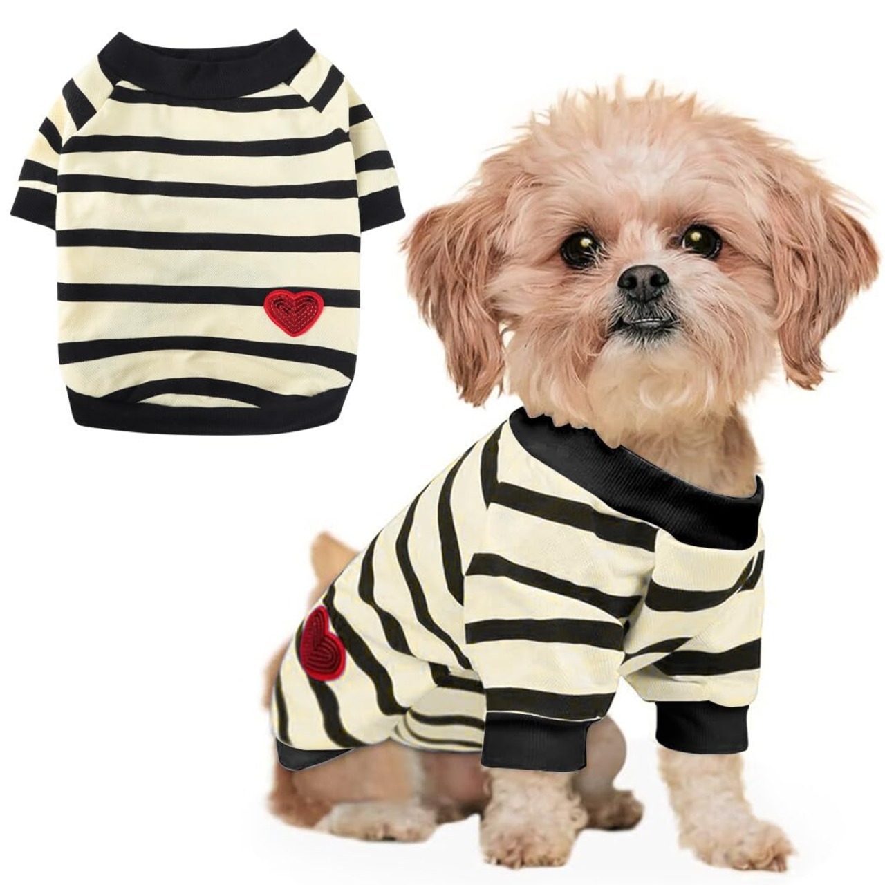 Jimjis 犬服 春夏 犬の服 猫服 半袖 ペット服 Tシャツ 犬抜け毛服 小中型犬服 おしゃれ かわいい ハート柄 洋服 ストライブ お散歩お出かけウェアに 春夏服 柴犬 tシャツ 脱毛保護 ライトイエロー