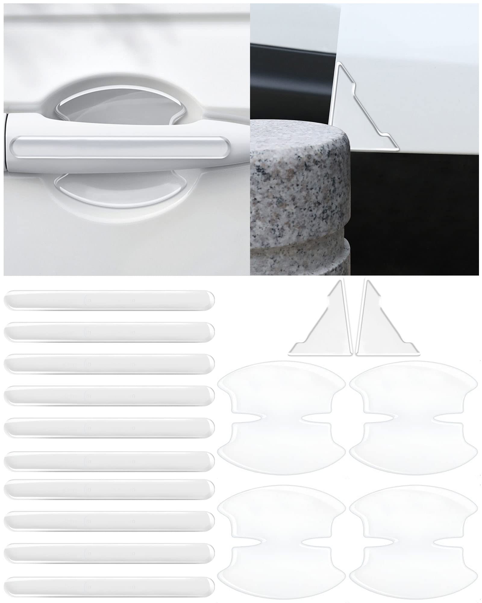 【お届けします】透明な車用 ドアガード10個と透明な車のドアボウルプロテクター4個が付属しますと透明なドアコーナープロテクター2個。車の表面の塗装を傷つける心配はありません。 アップグレードされた接着剤により、車のドアハンドルプロテクターが雨や洗車で落ちないようにすることができます。