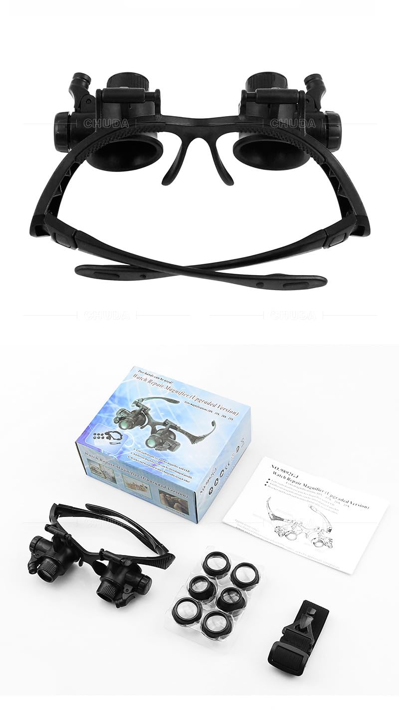 【特価商品】OBEST LED 付 ヘッドルーペ 眼鏡式 拡大鏡 10倍 15倍 20倍 25倍 精密作業に最適