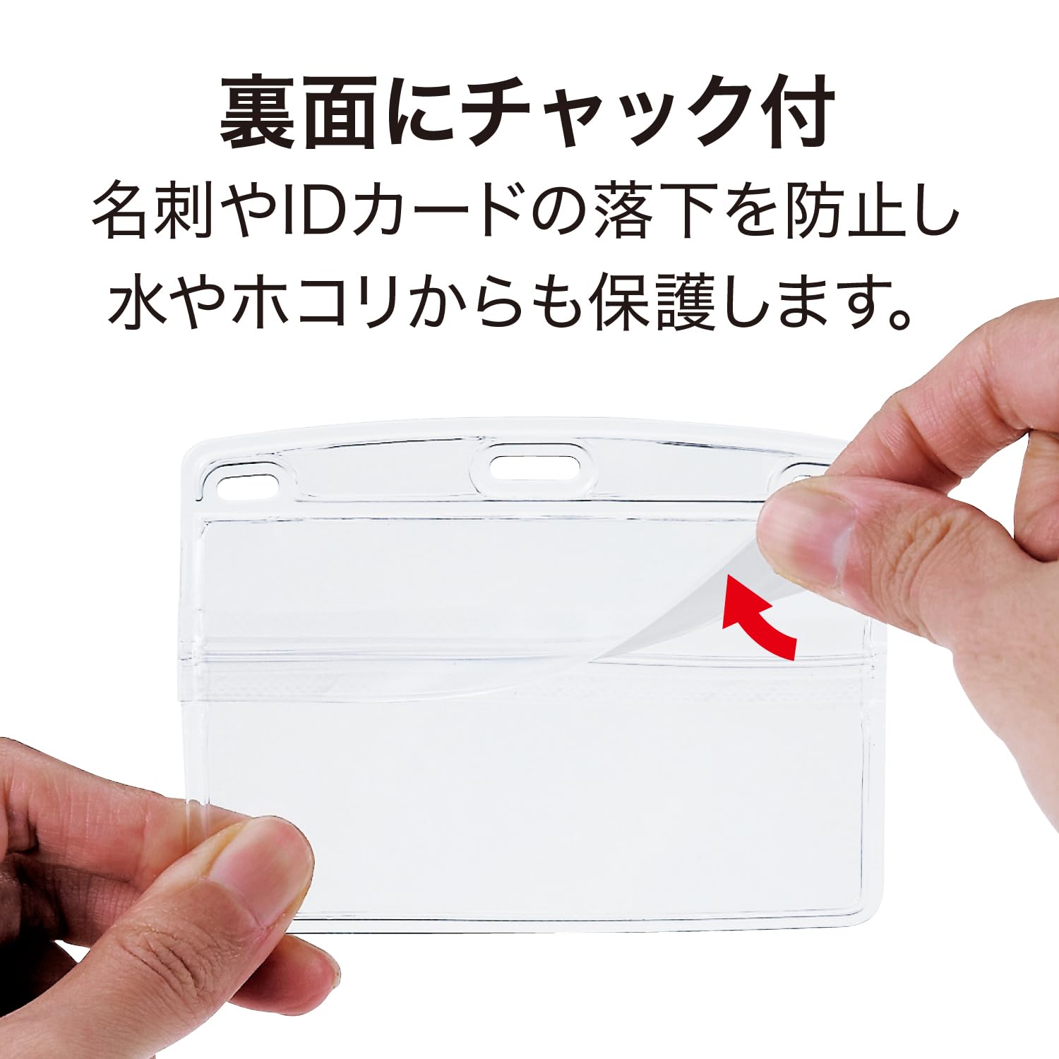 簡単取り付けクリップ式 吊り下げ名札 / 名刺サイズよりひとまわり大きい特大サイズケース / 水やほこりの入りにくいチャック式ケース