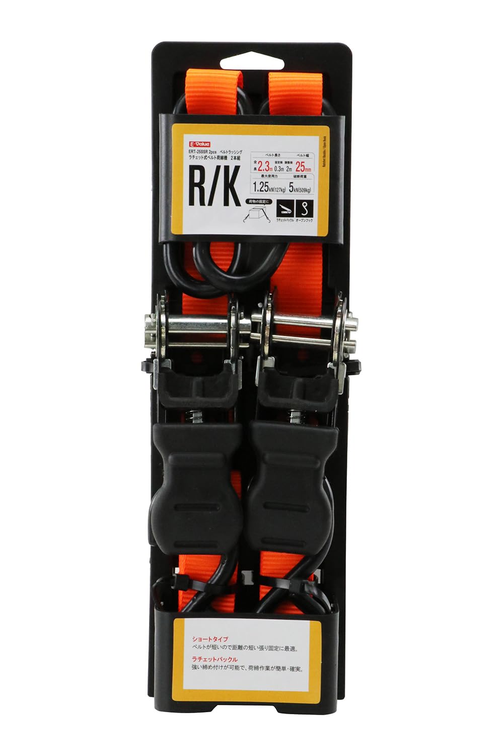 イーバリュー(E-Value) ラチェット式ベルト荷締機 ショートタイプ ERT-25SSR 2pcs 2.3m