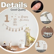 Qkie ハッピーバースデー 飾り フェルト布 ハーフバースデー バースデー 飾り 女の子 男の子 happy half birthday キリン バルーン、ケーキトッパー、タッセル タペストリー、誕生日ケーキ 飾り 誕生日 飾り 大人 写真背景 子供 飾り お祝い Birthday Party Decorations (1 Happy Birthday)