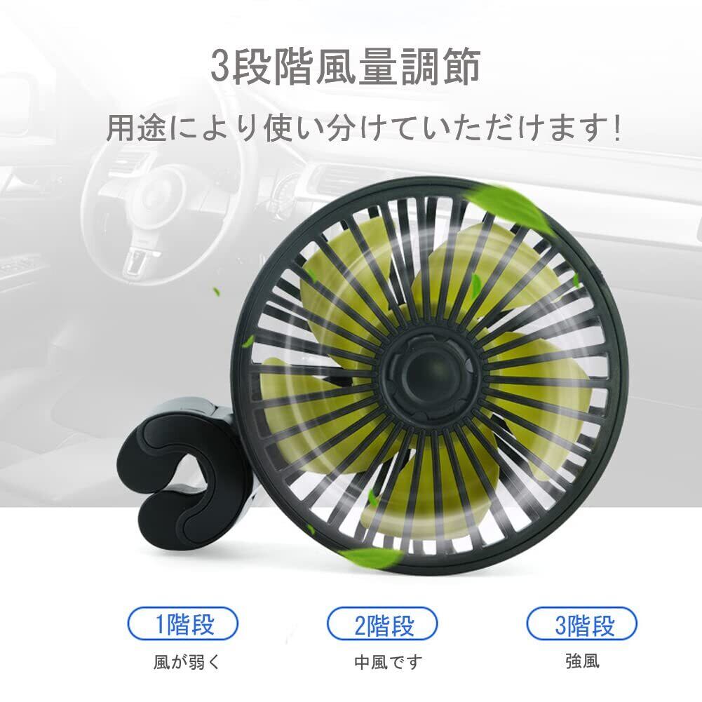 【3階段風量調節・角度調整可能】この車用ファンは強、中、弱の3段階の風量を選択られる可能です。強い風力で車内を涼しくするだけではなく、タバコなどの嫌な臭いを車外に出し、綺麗な空気を車内に循環させることができます。暑い季節には涼しく新鮮な気持ちをもらえます。それに扇風機はは上下左右の角度調整で隅々まで風が届きます。