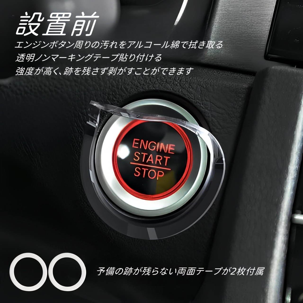 ️【2ステップ簡単取り付け】両面テープの片面を剥がしてボタンカバーの底部に貼り付け、次に両面テープの反対側を剥がして外輪に正確に貼り付けるだけです。エンジンスタートボタンのこと。取り付ける前に車のボタン付近の汚れをきれいにしてください。