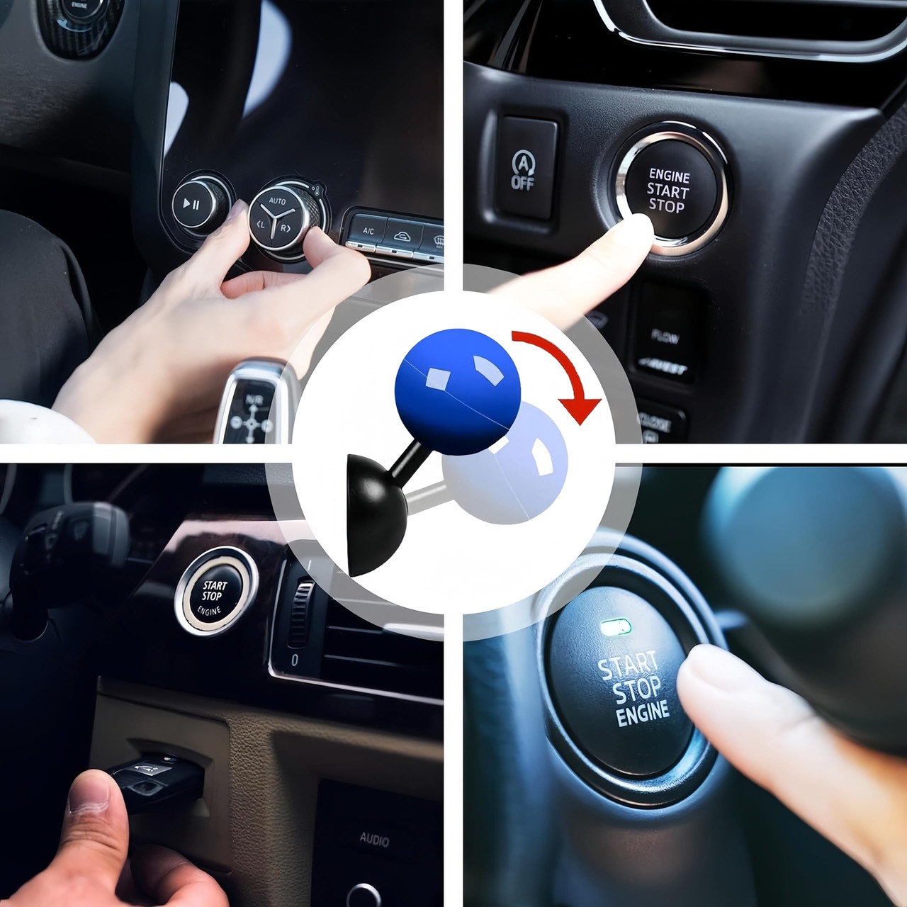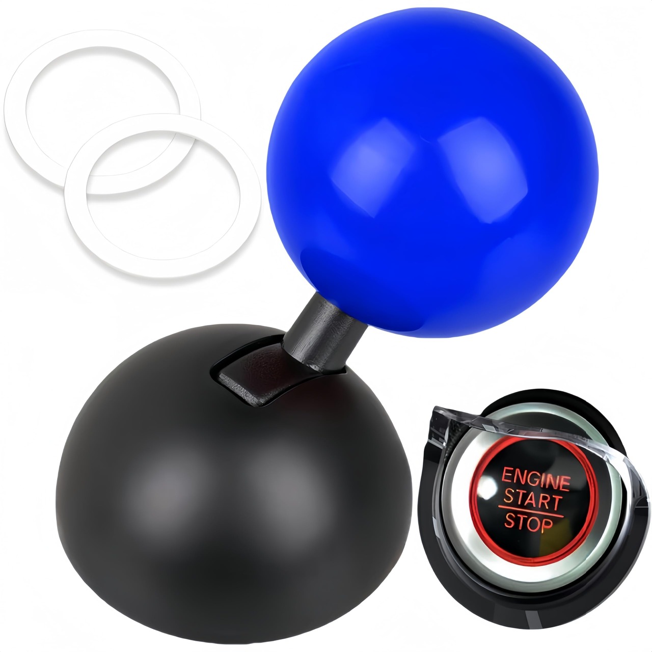 Korekaou エンジンスタートボタン レバー 面白い 車 プッシュスタート レバー スタートボタン 球形 車の点火ボタンカバー 後付け 簡単取り付け (プラスチック 青)