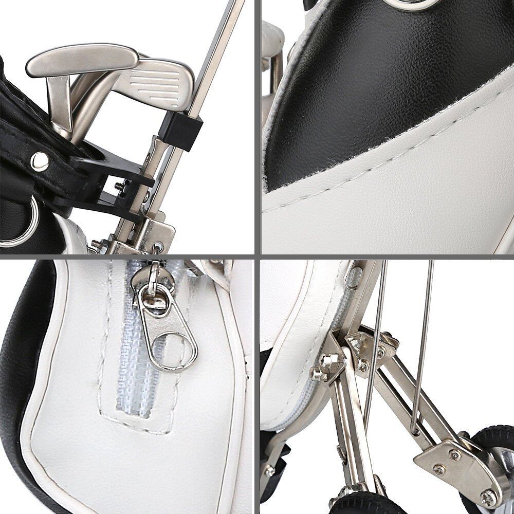 ゴルフペン ペン立て3本のペン ゴルフ景品 ゴルフ記念品 ゴルフギフト 卓上スタンド ミニPU ゴルフバッグ付き (黒+白)