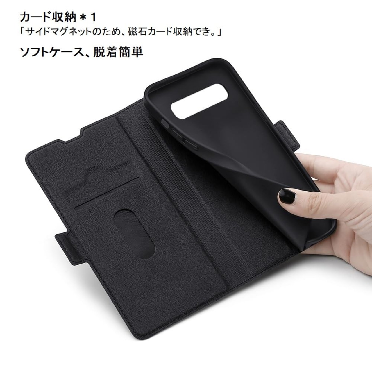 「カード収納&サイドマグネット」カードポケット*1枚が備わっております。カバーを閉めるとき、カバーの側面にマグネットでケースカバーを閉めます、簡易に開閉する心配はありません。「磁気カードの収納はできます。」
