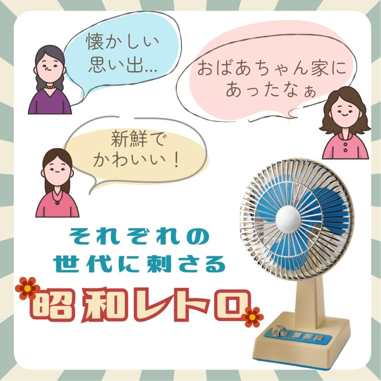 「どこでもレトロ扇風機」は、デザイン性と機能性、そして利便性を追求した一台。