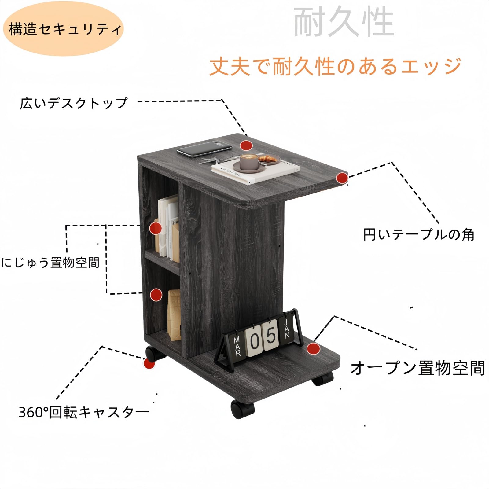 Merytes サイドテーブル サイドテーブル キャスター付き ベッド ソファリビング R角保護 ワゴン 可移動ナイトテーブル
