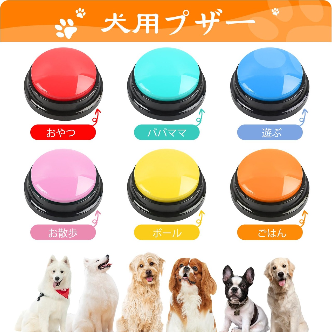 【2022最新】6個入り録音ボタンセット 猫 犬ペット用コミュニケーションボタン 30秒録音再生訓練用 ペットトレーニングブザー話すボタン