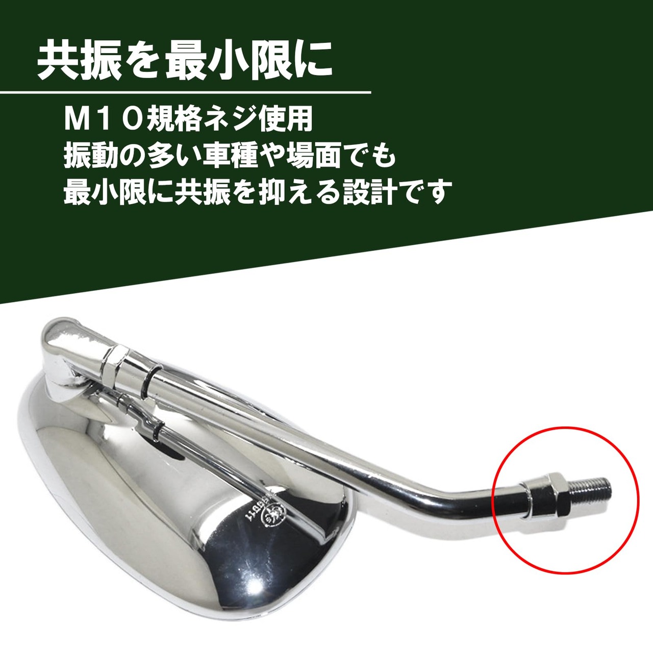 【振動を最小限に】M10規格のネジを使用することで、振動の多い車種や場面にも強い仕上がりになっています。