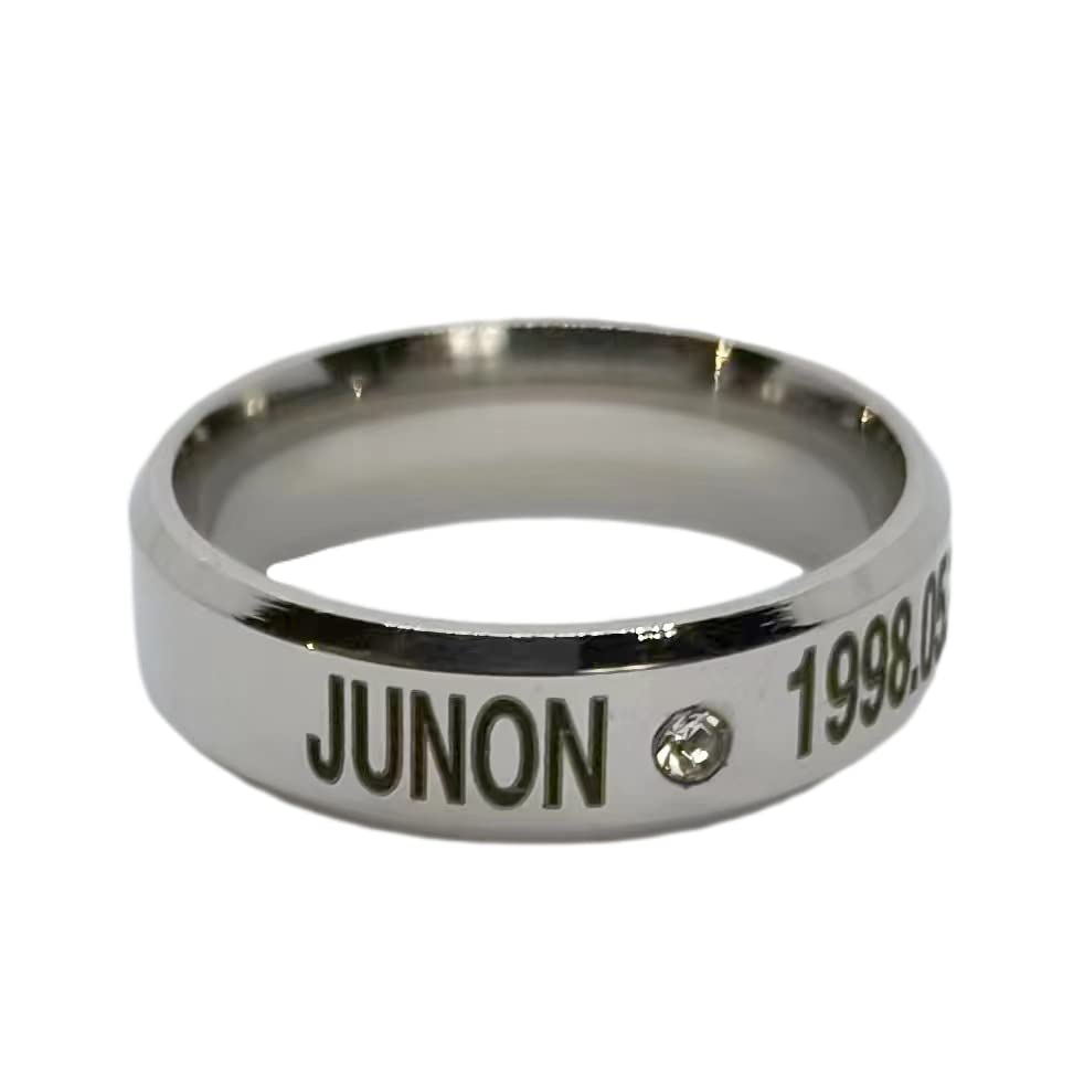 [Fangoods] BE:FIRST リング ビーファースト メンバー大集合 名前 誕生日刻印 指輪 be first グッズ 記念日 ネックレス 黒紐付き 応援グッズ レディース メンズプレゼント アクセサリー シンプル オシャレ アレルギー ペンライト (JUNON (ジュノン) ステンレススチール)