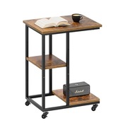 【在庫処分】kukeimaru サイドテーブル キャスター付きサイドテーブル 可移動ベッドテーブル コの字型デザイン テーブル 幅40×奥行き30×高さ54cm レトロブラウン
