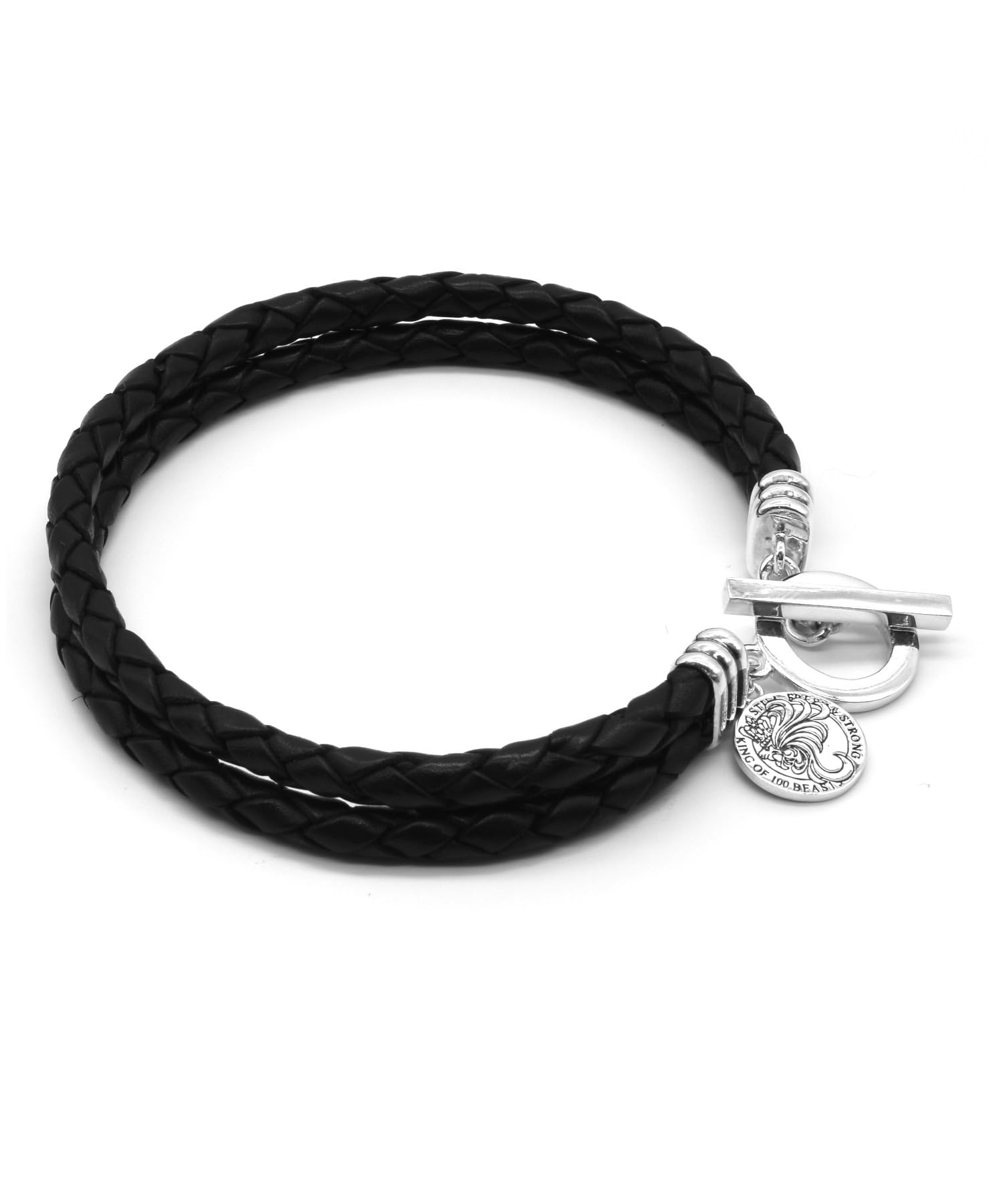 2本のレザーを1つに束ねたTバータイプのレザーブレスレット。