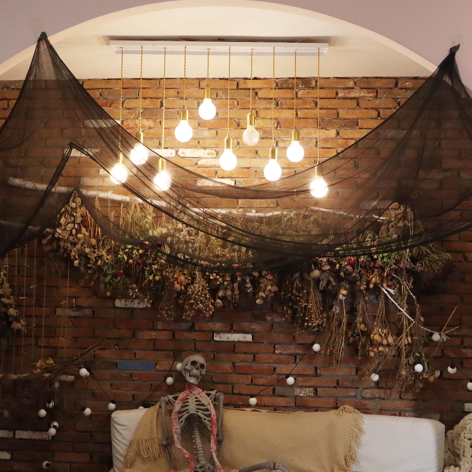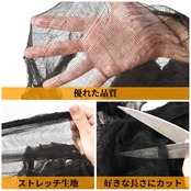 自由に飾り付け:非常に細かいメッシュの黒いガーゼ素材で、簡単に破れたり、カットしたり、ドレープしたりできます。黒いガーゼをスパイダーやコウモリ、そして他のハロウィーンの飾りと一緒に使うことで、より不気味な雰囲気を演出できます。