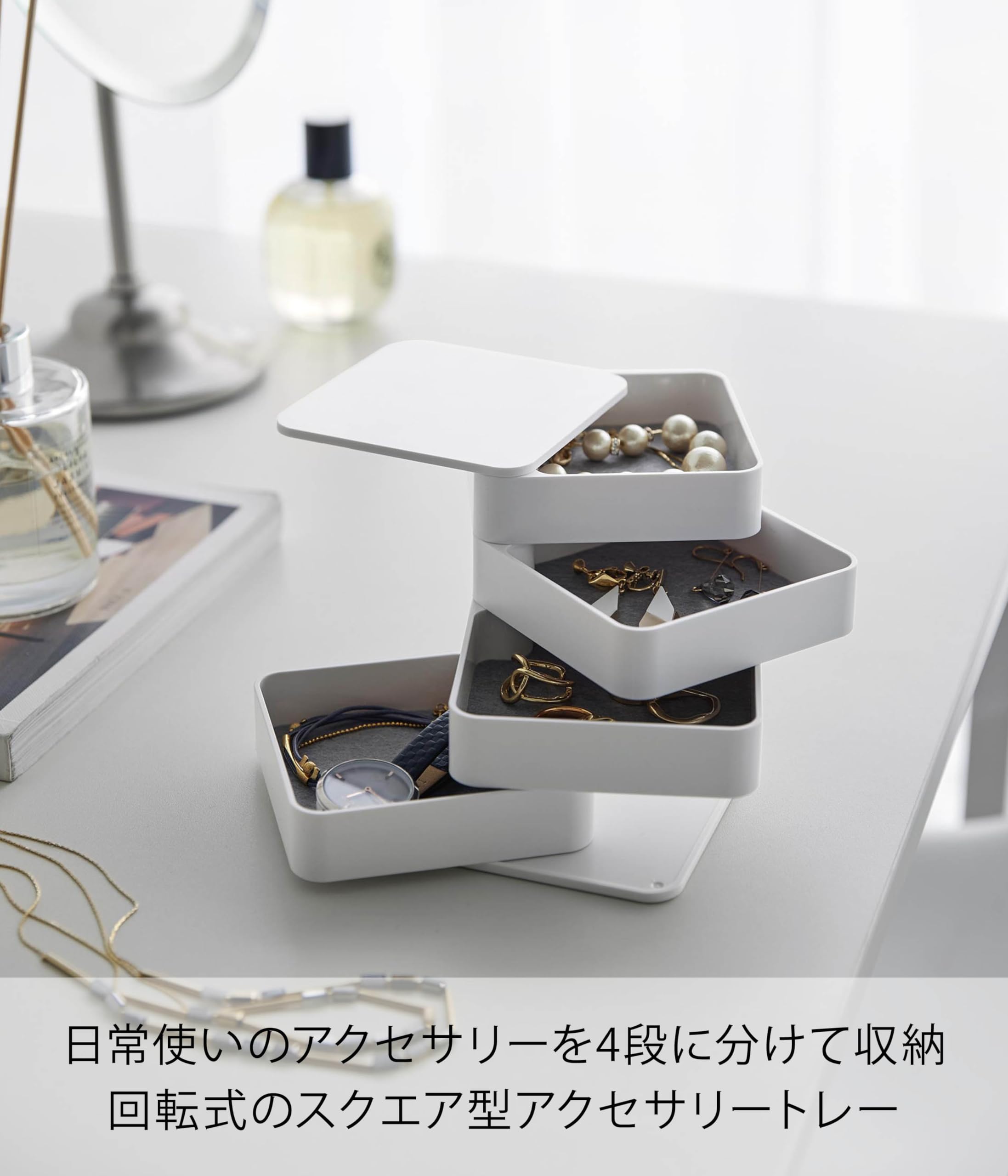 回転式で取り出しやすいスクエア型アクセサリートレー4段。
