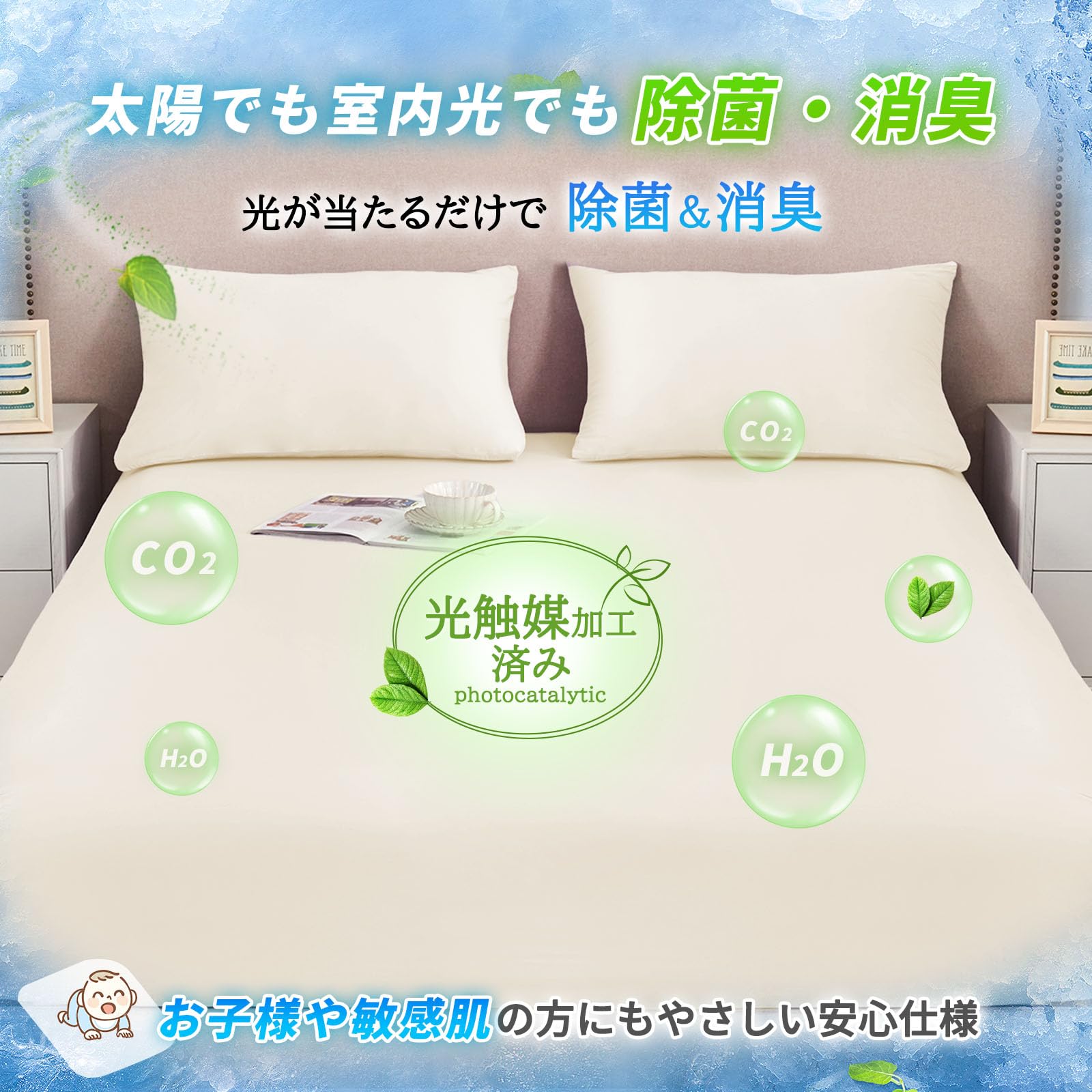 【見えない汚れも、光触媒でスッキリ清潔】汗・皮脂・ホコリ…毎日使うものだからこそ、見えない菌やニオイが気になりますよね。このシーツは光触媒加工で、太陽や室内の光が当たるたびに除菌&消臭してくれるから、洗濯の間もずっと清潔。
