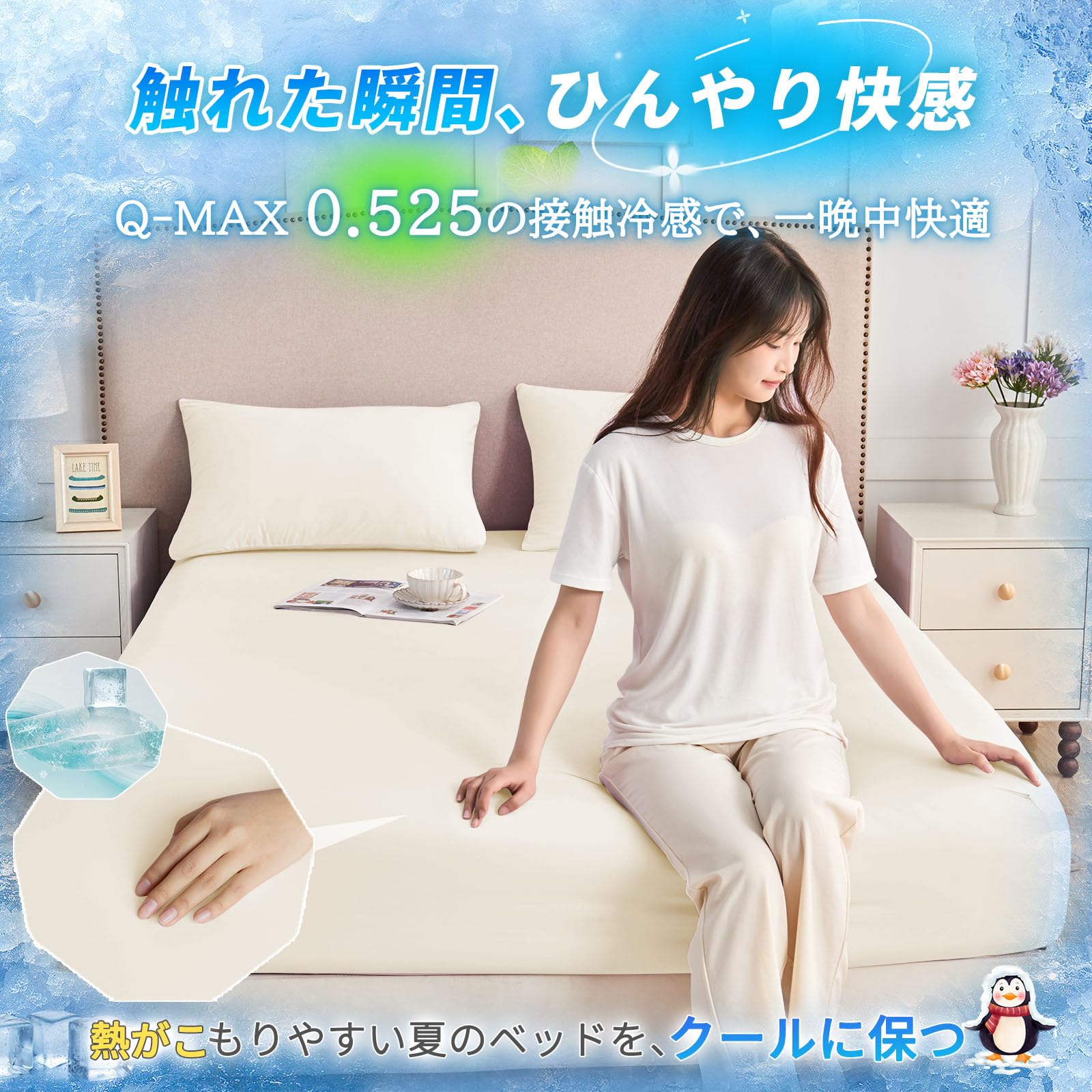 【エアコンの冷気、直接感じたくない夜に】寝苦しい夏の夜、エアコンをつけっぱなしにすると体が冷えすぎ、そんな時、この接触冷感シーツが大活躍。ひんやり気持ちいいけど、直接冷風が当たるよりずっとやさしい。Q-max 0.525のひんやり感で、自然に涼しく眠れます。