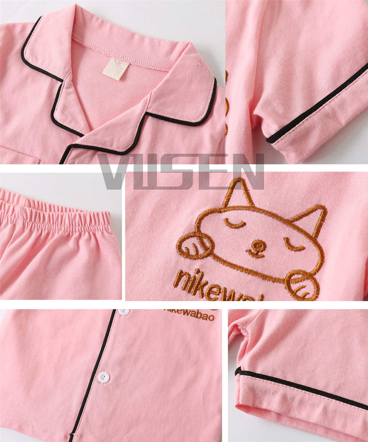 [VIISEN] パジャマ ガールズ ボーイズ ルームウェア 可愛い カブス柄 春 夏 秋 冬 女の子 男の子 子供服 寝巻き 部屋着 寝間着 2点 セット前開き長袖 半袖 キッズ ルームウェア