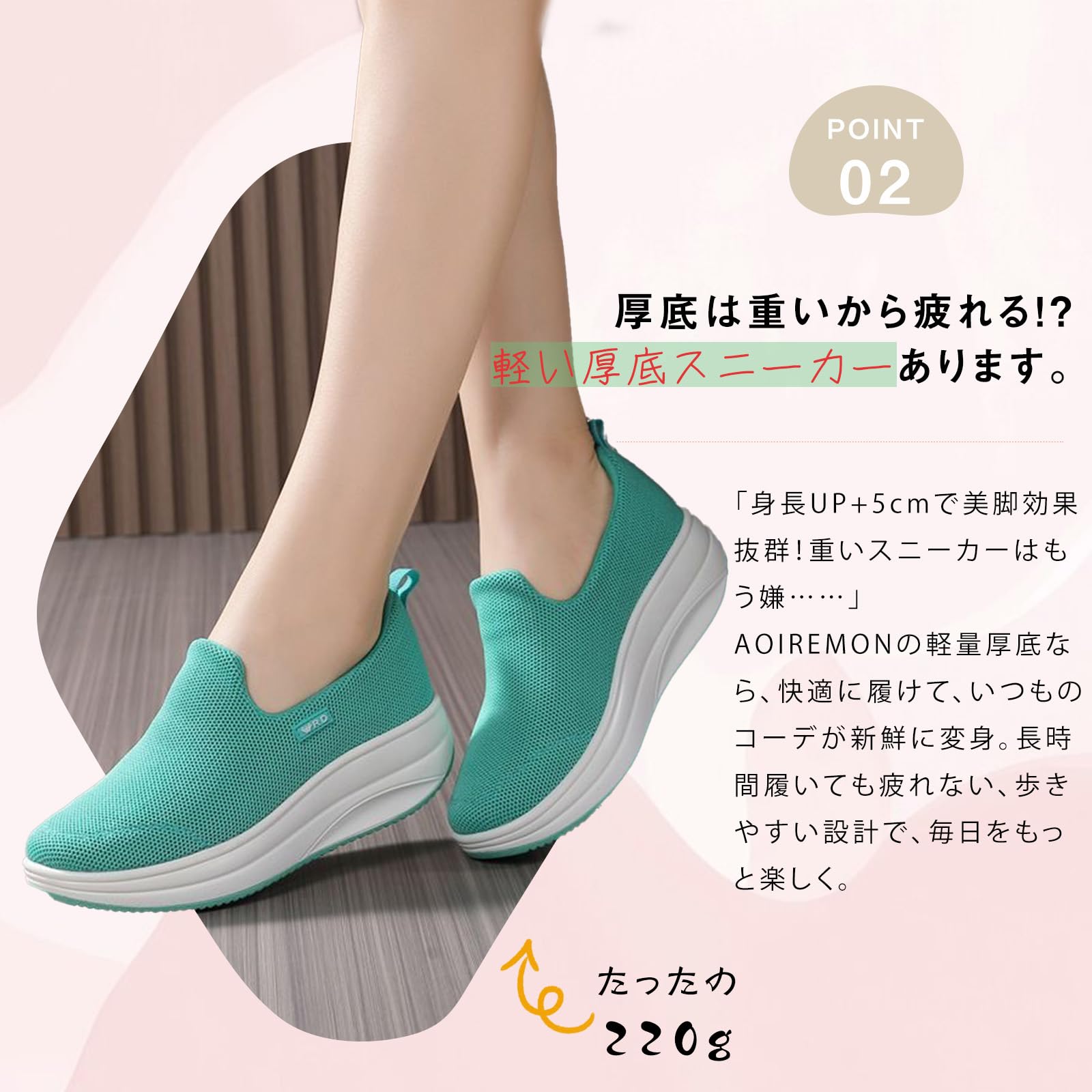 [AOIREMON] レディース ウォーキングシューズ 厚底スニーカー ナースシューズ スリッポン 軽量 船型底 身長アップ 美脚 疲れにくい 快適 スポーツシューズ アウトドア ローファー 看護師 作業靴 介護靴