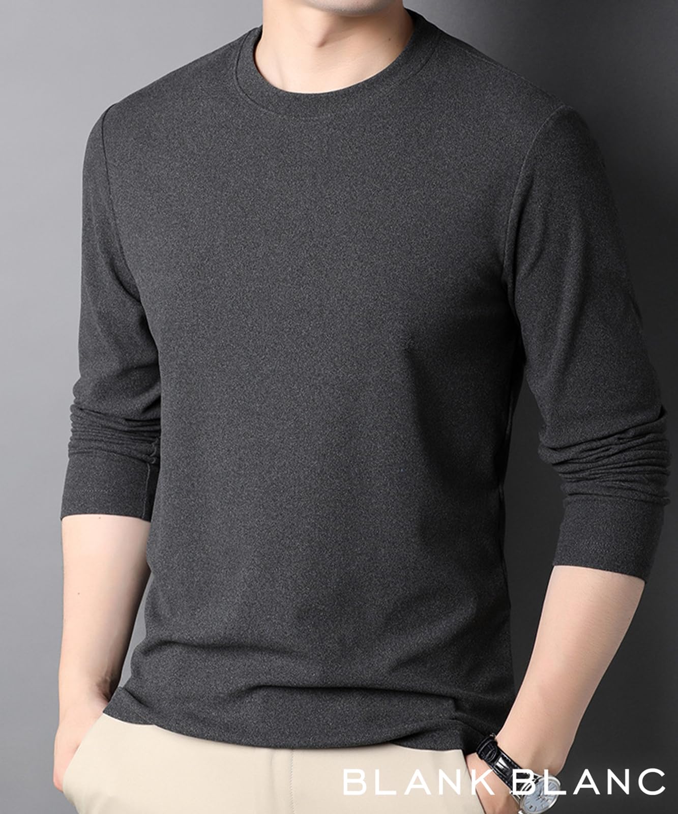 【人気商品】[BLANK BLANC] 両面起毛 tシャツ 長袖 メンズ フリース インナー 防寒着 無地 ロンT 丸首 暖かい 起毛 保温 秋冬