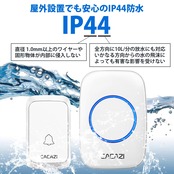 <配線工事不要> 付属の両面テープもしくはネジで固定可能。 配線工事不要だからどなたでも簡単に設置が可能です。 電池を入れたら、送信機と受信機は自動で繋がります。 <36種メロディ> 多くのパターンの音楽をご用意しました。 お好みに合わせて曲を選択いただけます。 音量調整も4段階で調整可能です。(無音も含む) <最大300m受信> 送信機と受信機は無線で接続し、直線距離で最大300mの距離で繋がります。