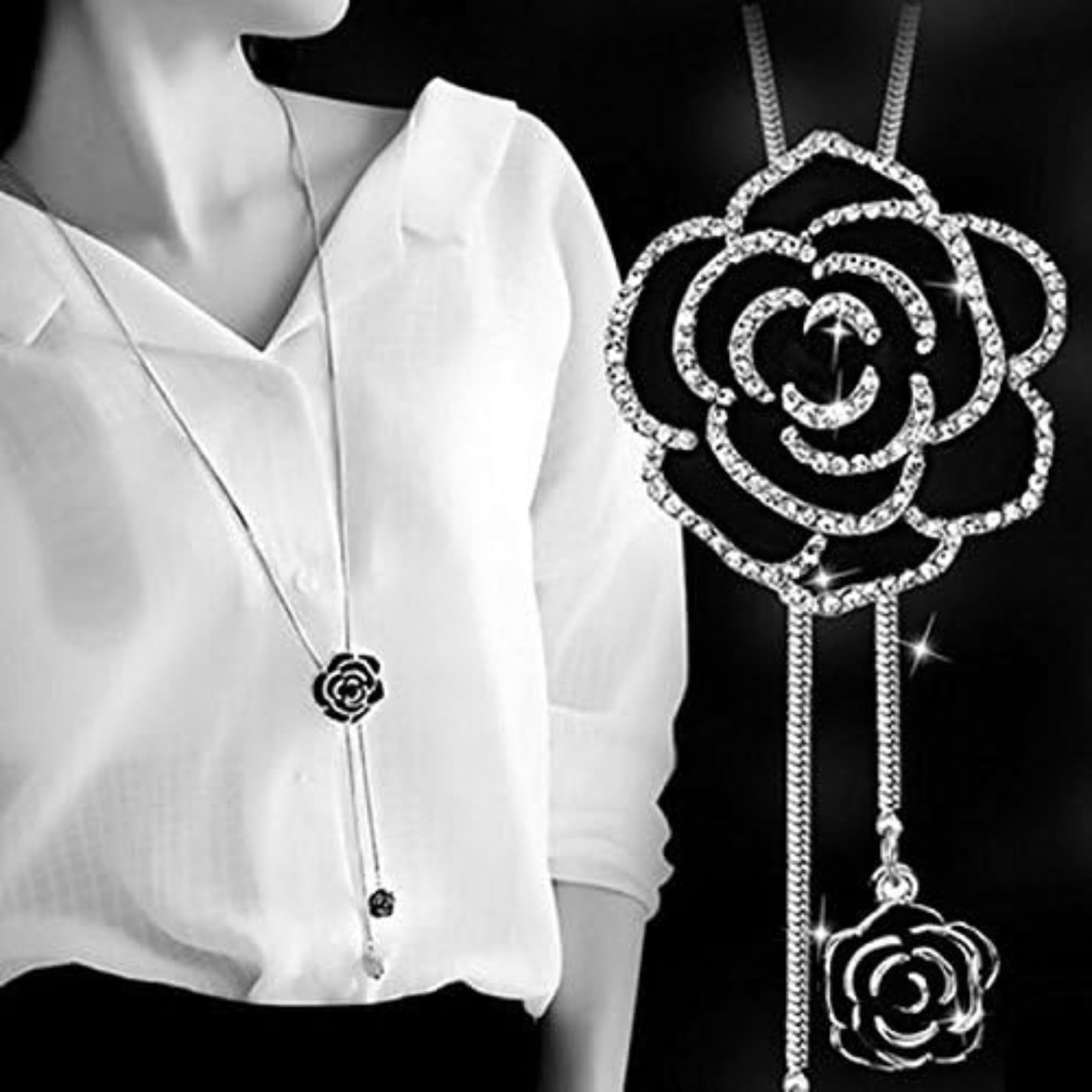 ahuahua ロングネックレス エレガント ファッション 人気 女性 レディース ニッケル アクサセリー チャーム クリスタル ラインストーン ジュエリー プレゼント ギフト お祝い 誕生日 記念日 お出掛け お呼ばれ 長め 首飾り 長い 贈り物 婦人 (ローズ)