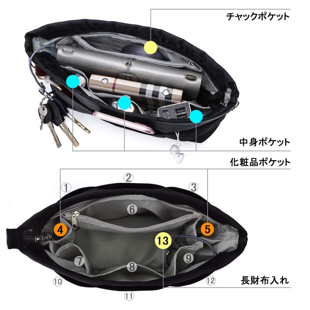 仕切り13個で鞄の中整理整頓。ゴチャゴチャしているバッグの中がすっきりと片付きます。内容物が一目瞭然で、取り出し易く使いやすい鞄になります。