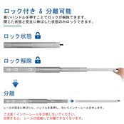 ロックイン&ロックアウト設計 --- スライドは3つ折りで完全に拡張できます。 全閉時と全開時にロックがかかり、任意にスライドを防止できます。