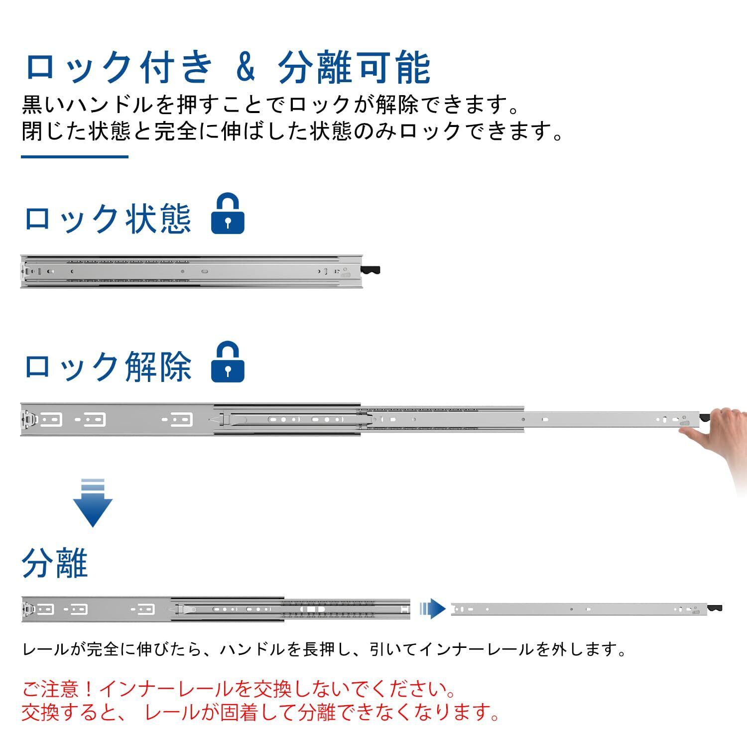 VADANIA VD1551 重量用スライドレール ロック付き 3段引 フルエクステンション ボールベアリング 横付き 引き出し用レール 450mm 左右1セット(2本入)