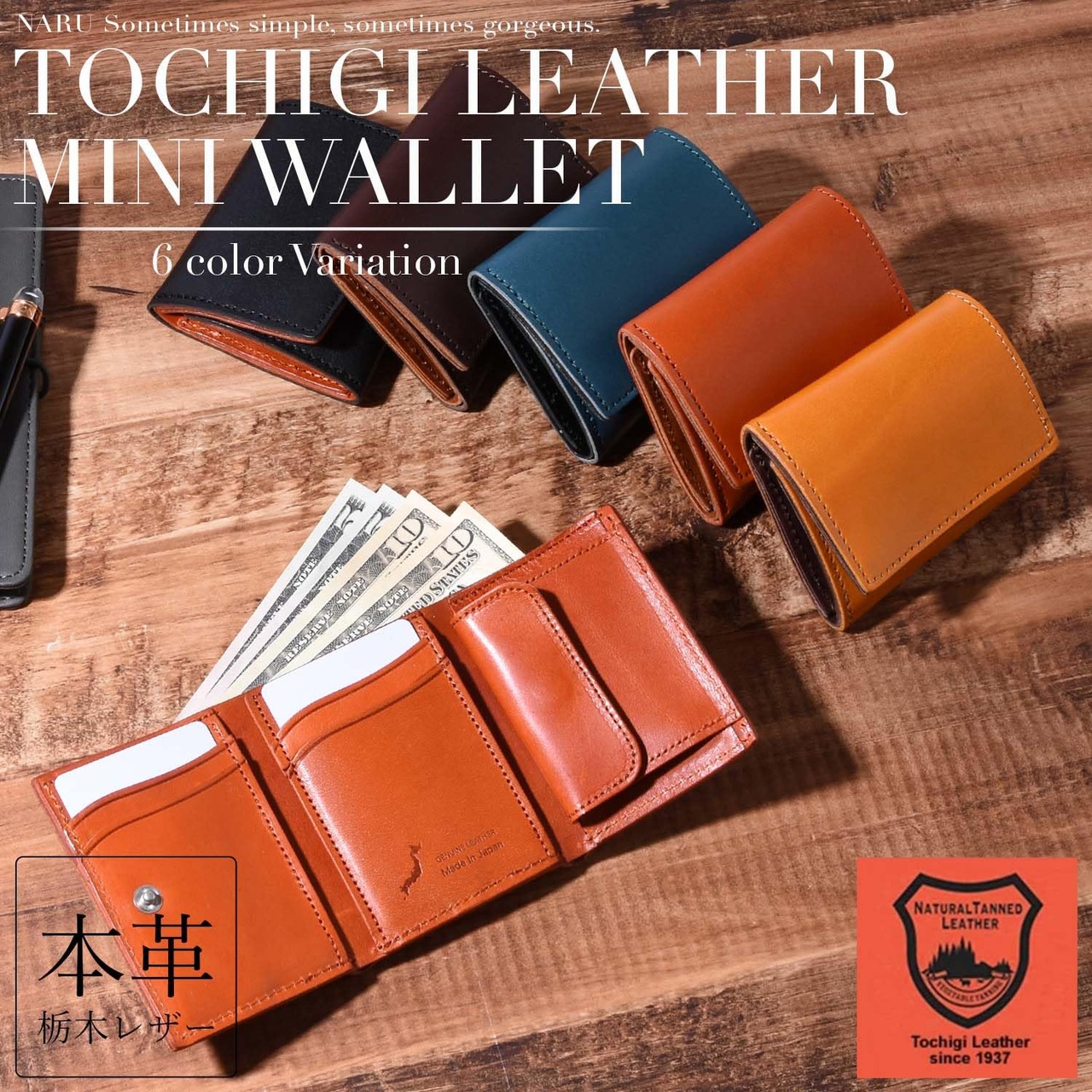 [NARU] 本革 栃木レザー コンパクト 三つ折り 財布 ミニ財布 メンズ レディース 小さい 小銭入れ カードケース おしゃれ 人気 ブランド 日本製 (レンガ)