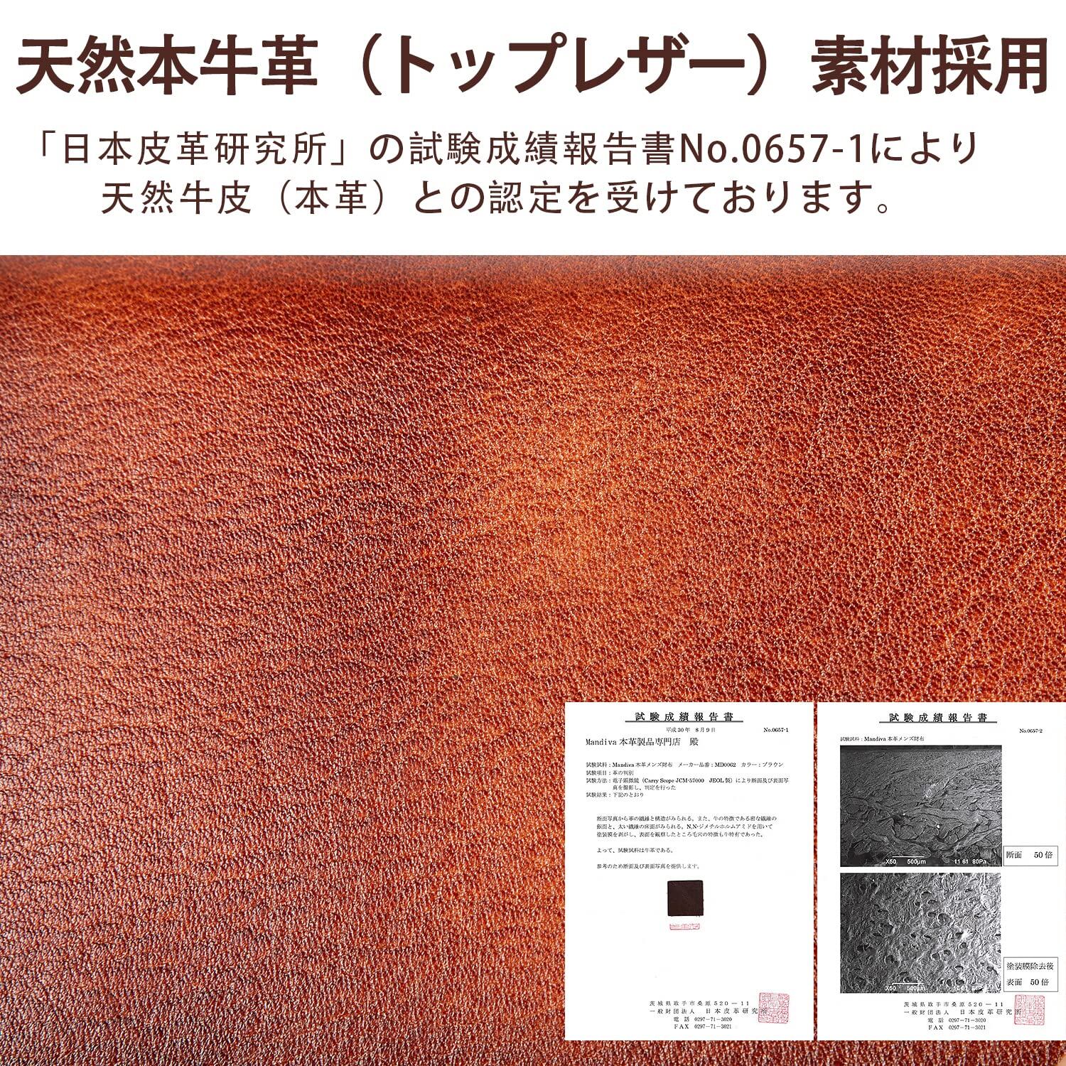 【こだわりの手作り】Mandiva本革財布は、腕を持つ職人によって一つひとつ丁寧に作られ、高級感あふれる手作りの逸品です。本商品は「一般財団法人 日本皮革研究所」の試験成績報告書No.0657-1により天然牛皮(本革)との認定を受けております。手触りが良く、耐久性と耐摩耗性が抜群、本革ならではの品質を楽しめます。
