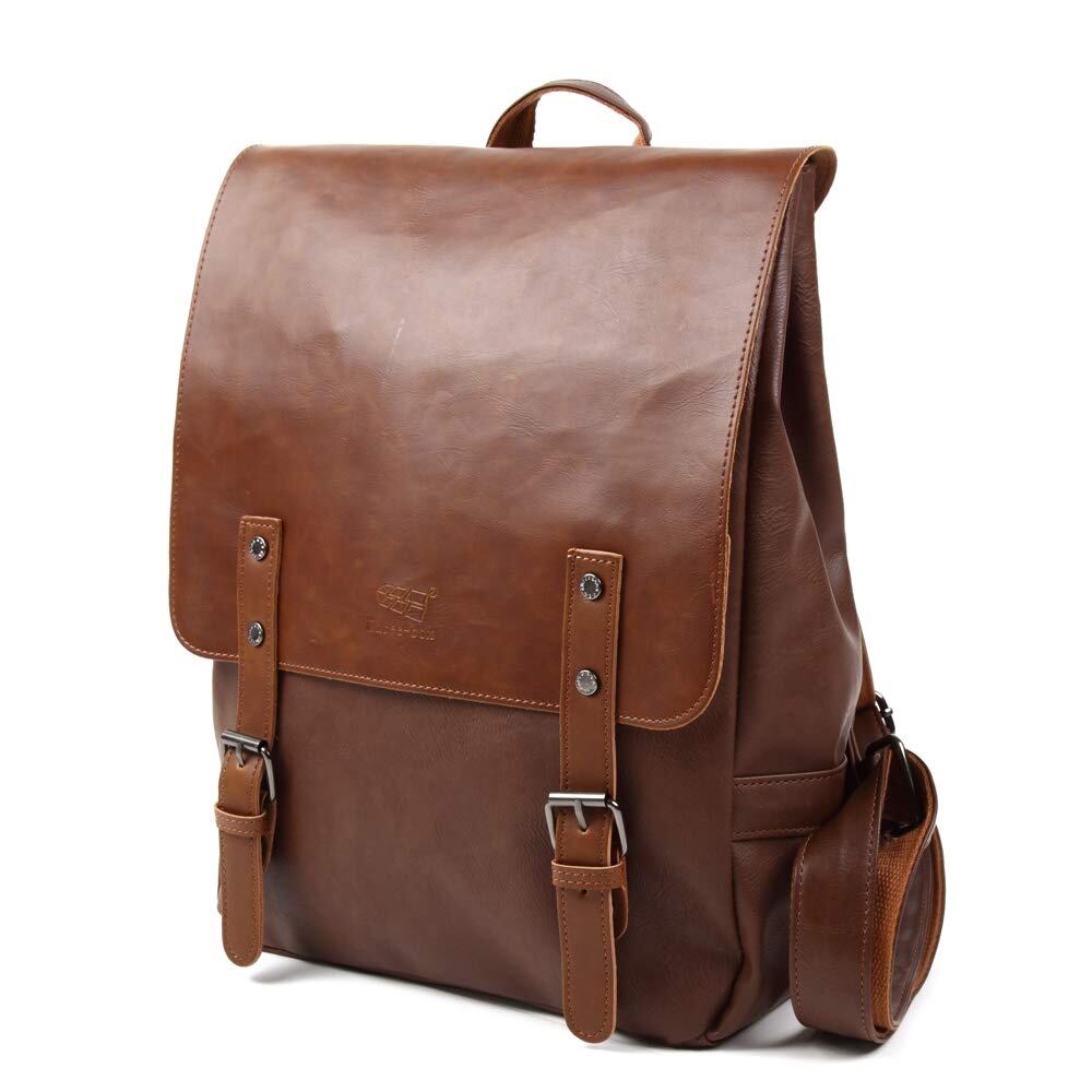 【通学・通勤に! A4サイズのノートPCが収納できるリュックサック】高級PUレザーを使用した、スクエア型、アンティーク調をイメージしたリュックサックです。タブレットはもちろん、14インチまでのノートPCもすっぽり入る驚きの収納力。さらに、折りたたみ傘やペットボトル、雑誌やファイルなど、ポイポイ入れても余裕の広さが自慢。メインポケットが大きく開くので、取り出しやすく入れやすいのも使いやすさのポイントです。