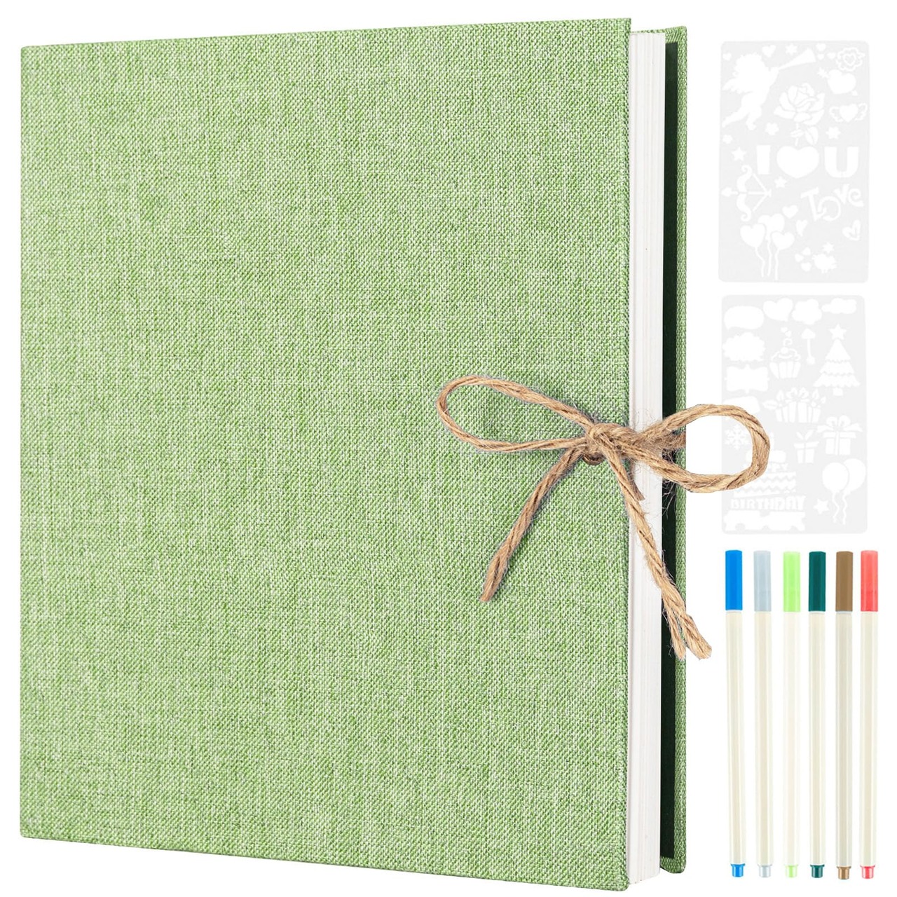 AIOR アルバム フォトアルバム 貼るタイプ フリー台紙 麻縄飾り バインダー式 写真アルバム 30枚/60ページ 手作りフォトブック 粘着式 写真収納 ファイル フィルム 家庭用 子供用 記念日 結婚式 誕生日 プレゼント グリーン
