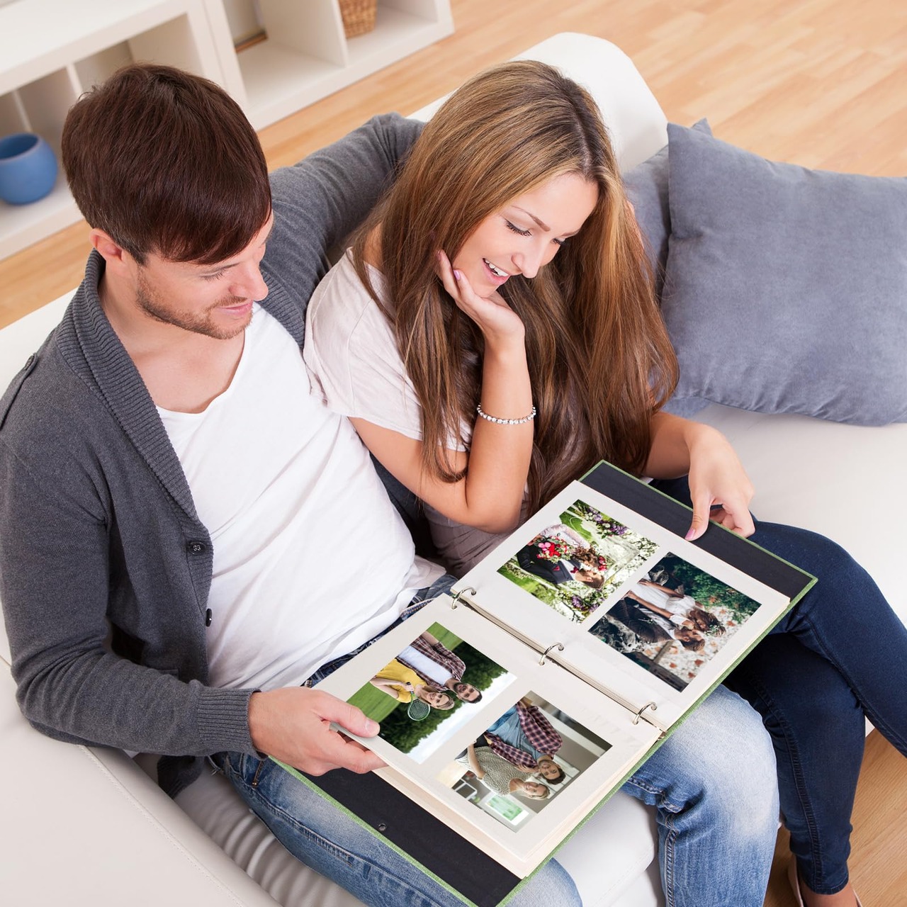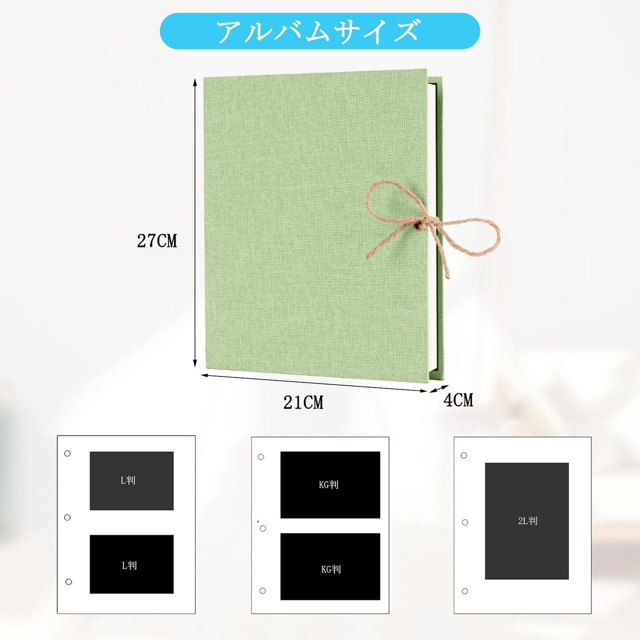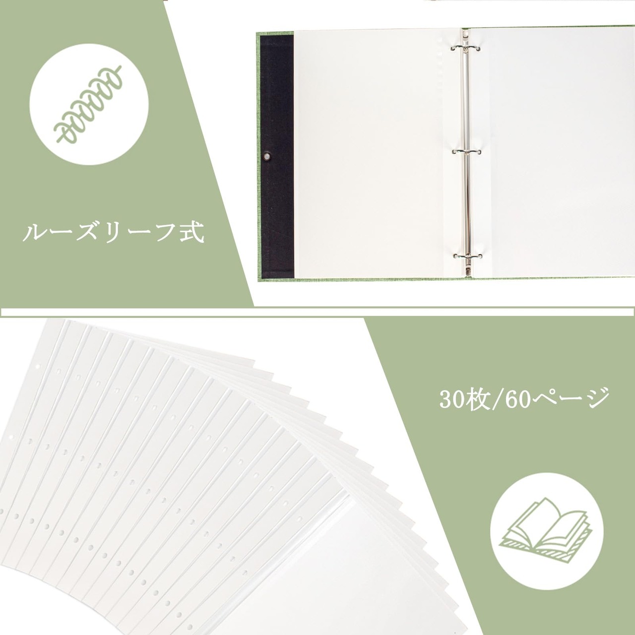 【特価商品】AIOR アルバム フォトアルバム 貼るタイプ フリー台紙 麻縄飾り バインダー式 写真アルバム 30枚/60ページ 手作りフォトブック 粘着式 写真収納 ファイル フィルム 家庭用 子供用 記念日 結婚式 誕生日 プレゼント グリーン