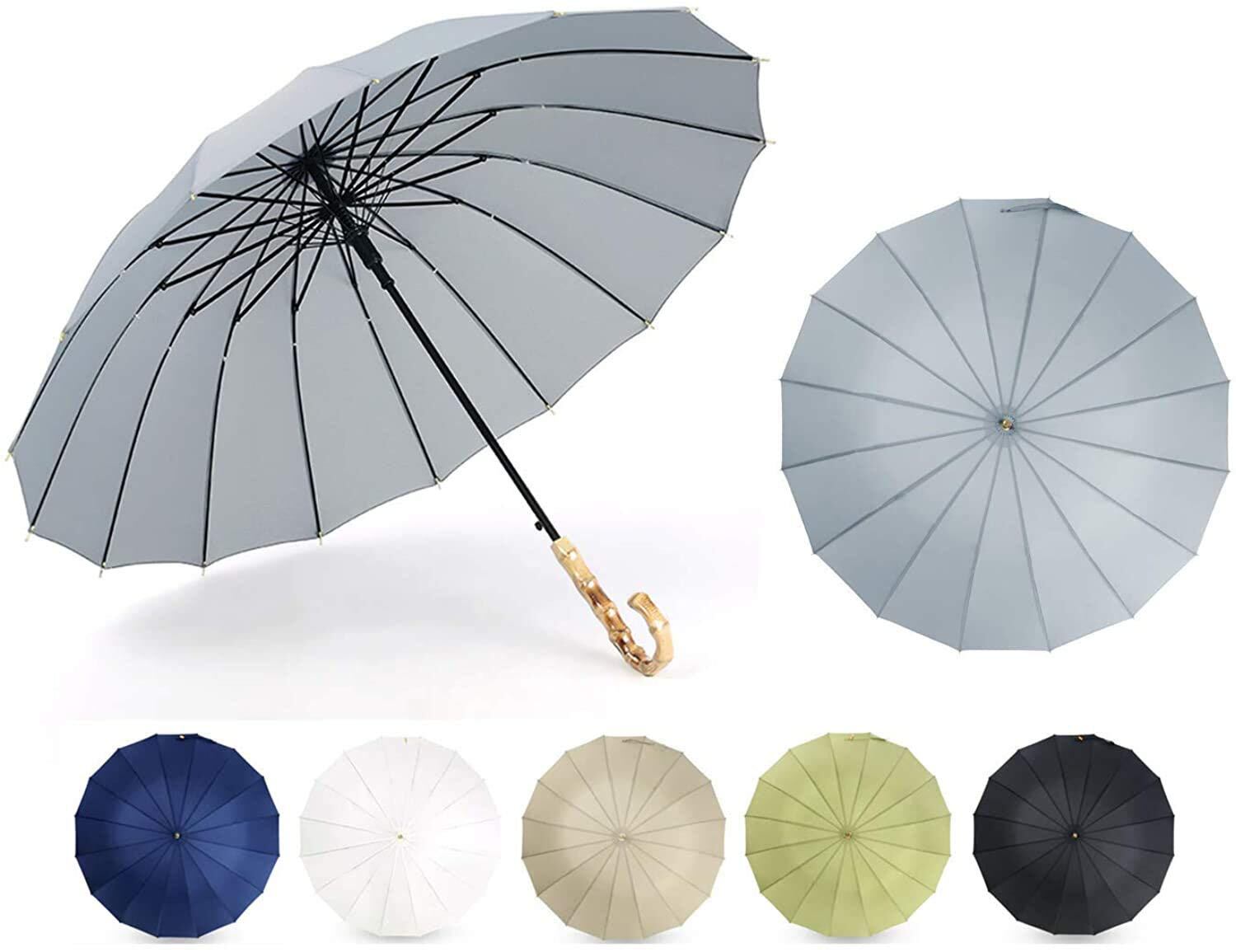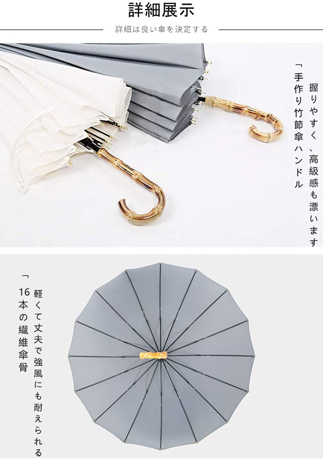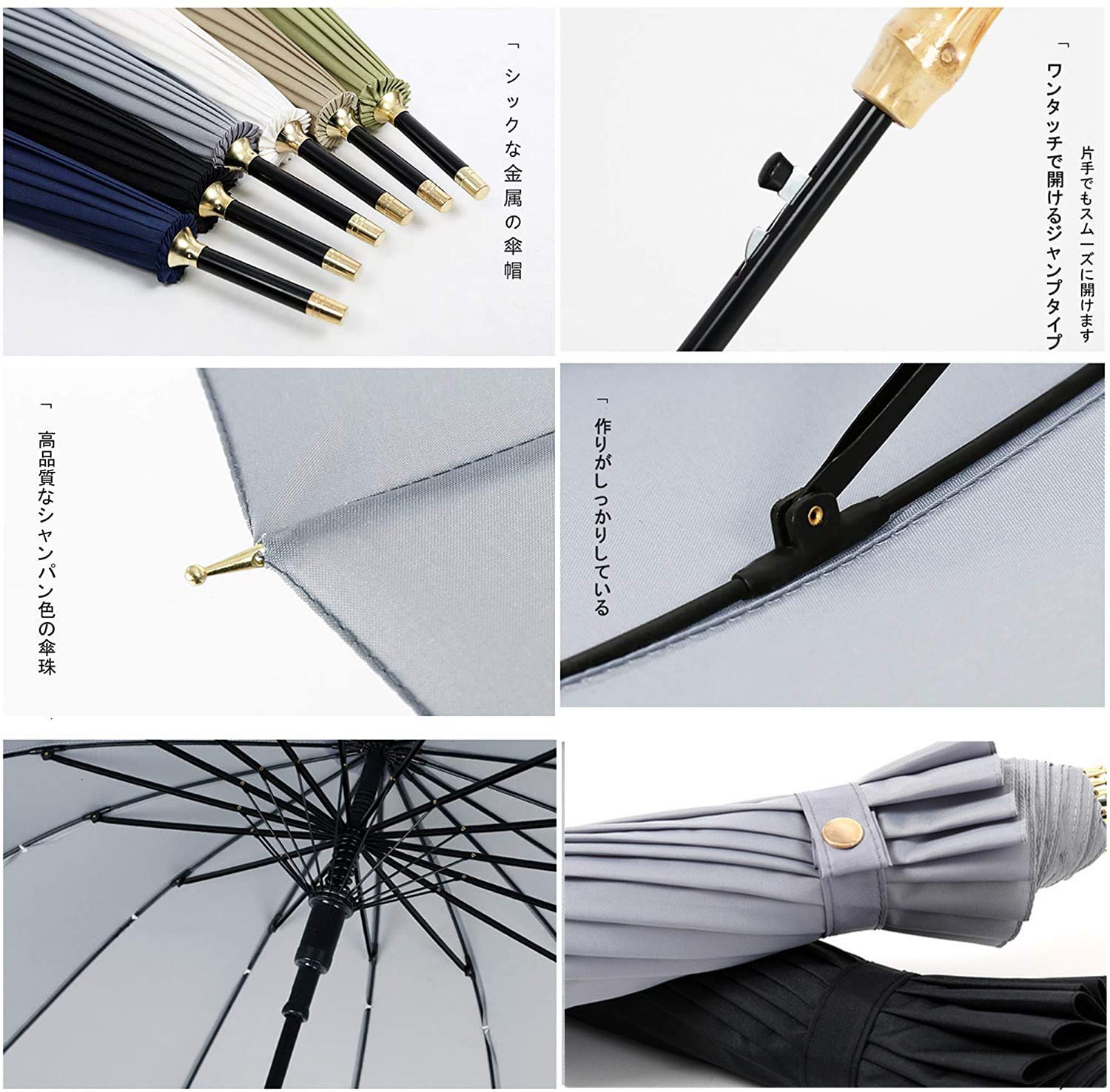 傘 長傘 16本骨 天然 竹 持ち手 ワンタッチ ジャンプ式 大きい 丈夫 耐風 軽量 メンズ レディース 晴雨兼用