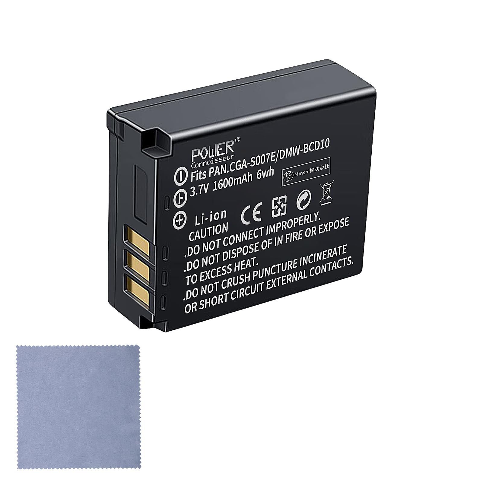 「Power-connoisseur」Panasonic DMW-BCD10、CGA-S007交換バッテリー DMC-TZ3 3.7V 1600mAh カメラ互換 バッテリー『カメラレンズクリーニングクロスをプレゼント』