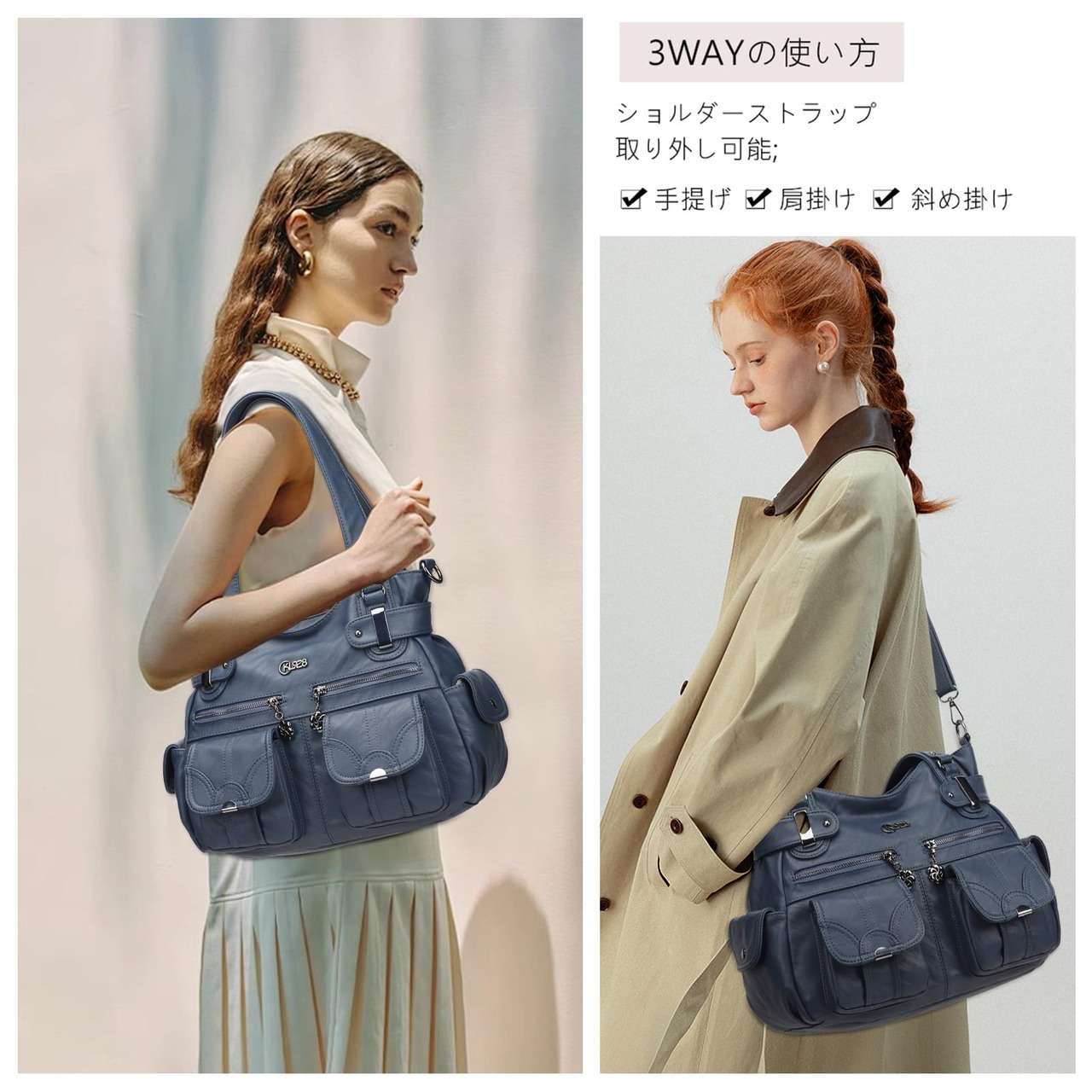 実用の3way使い方:調節可能なショルダー付き、手持ち&肩掛け&斜めかけの3WAY仕様のトートバッグです。場合と身なりによって違った使い方ができます。日常生活の通勤、通学、出張、旅行、デート、ショッピングなどビジネスカジュアルからウィークエンドシーンまで幅広く対応できる人気トートバッグです。