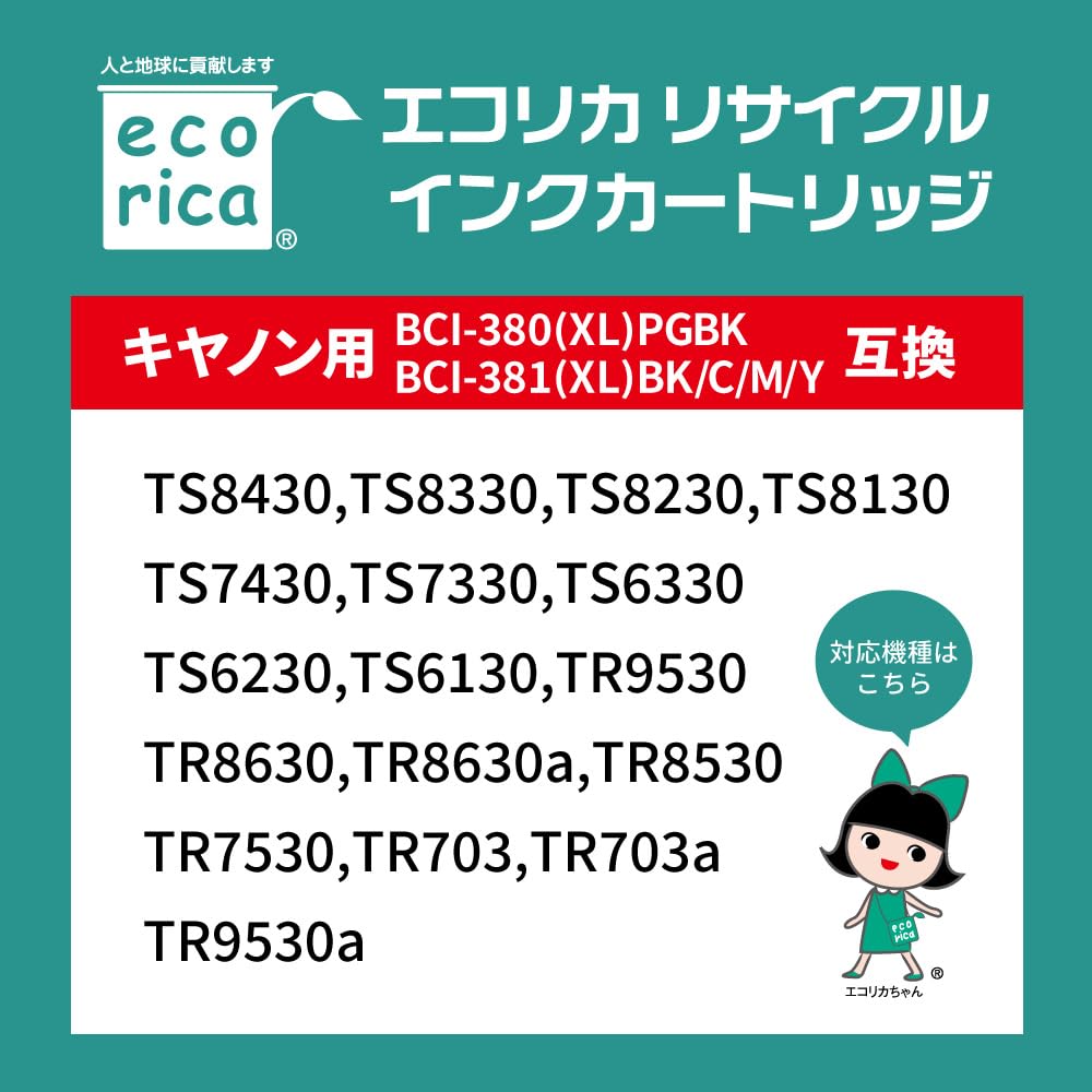 エコリカ キヤノン BCI-381+380/5MP対応リサイクルインク 5色パック EC-C381+380/5A 残量表示対応 【エコリカ封筒パッケージ】