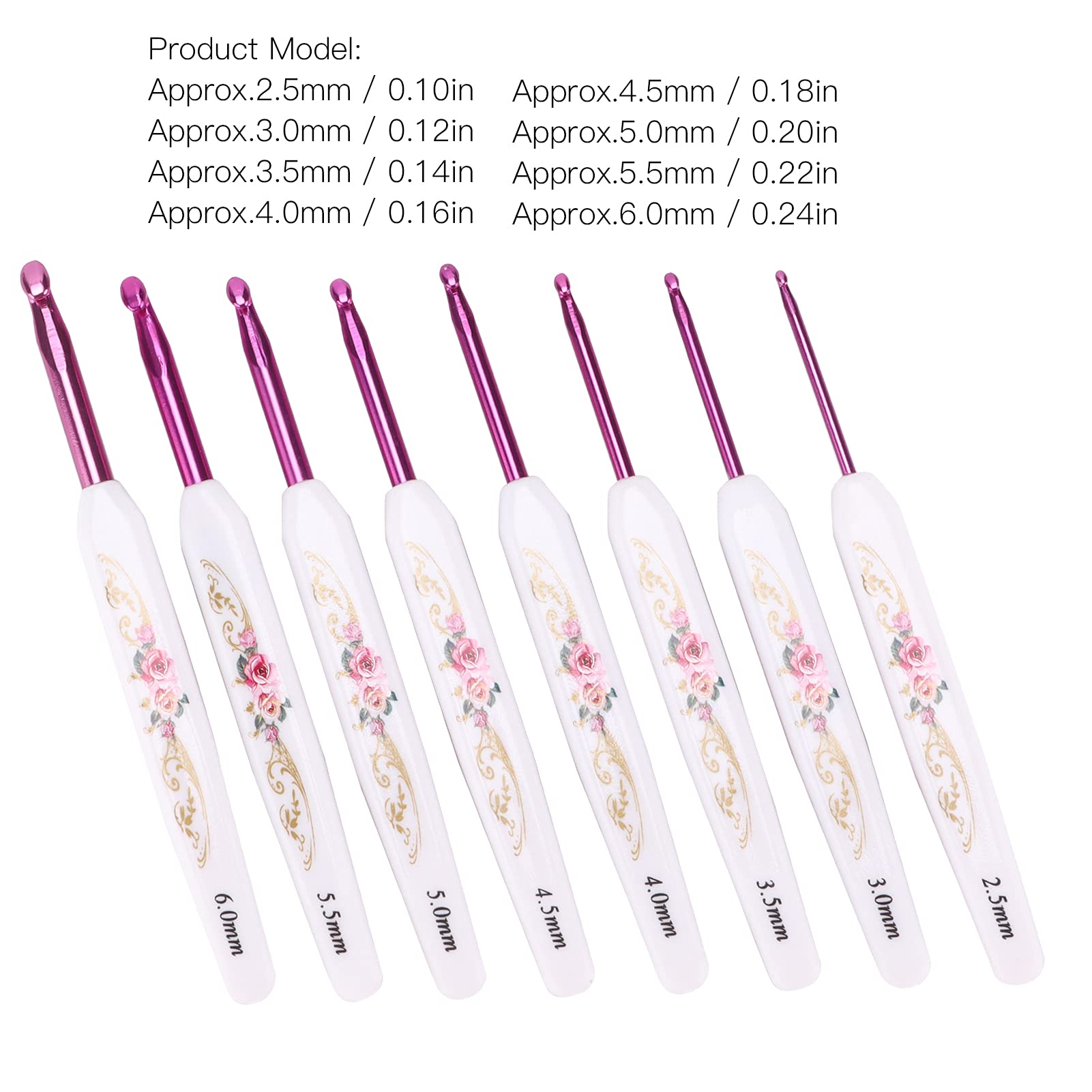 Sren かぎ針編みフックセット、かぎ針編みフックかぎ針編み針編み用編み物用DIY家庭用(紅花磁器パック8個入り)