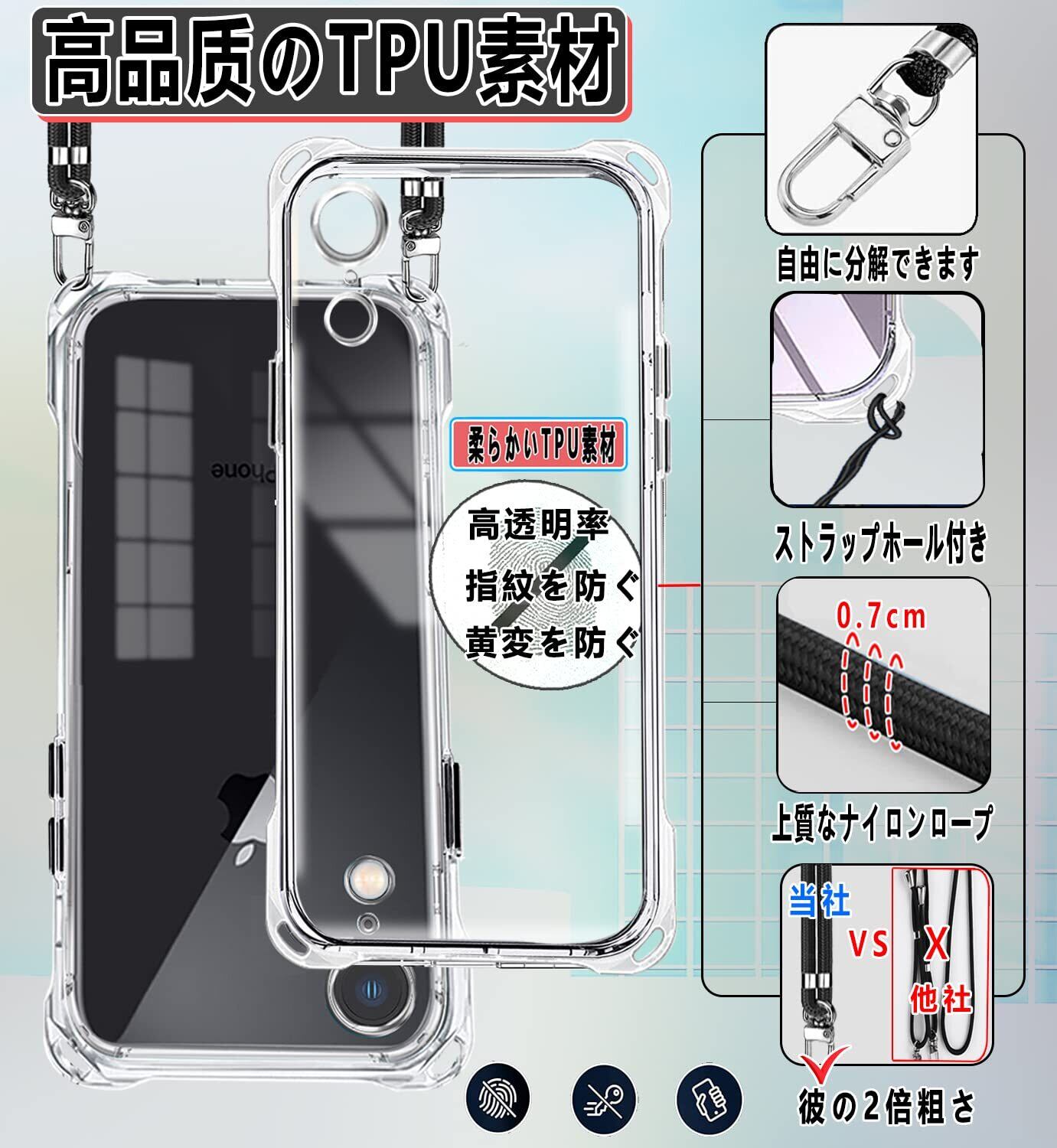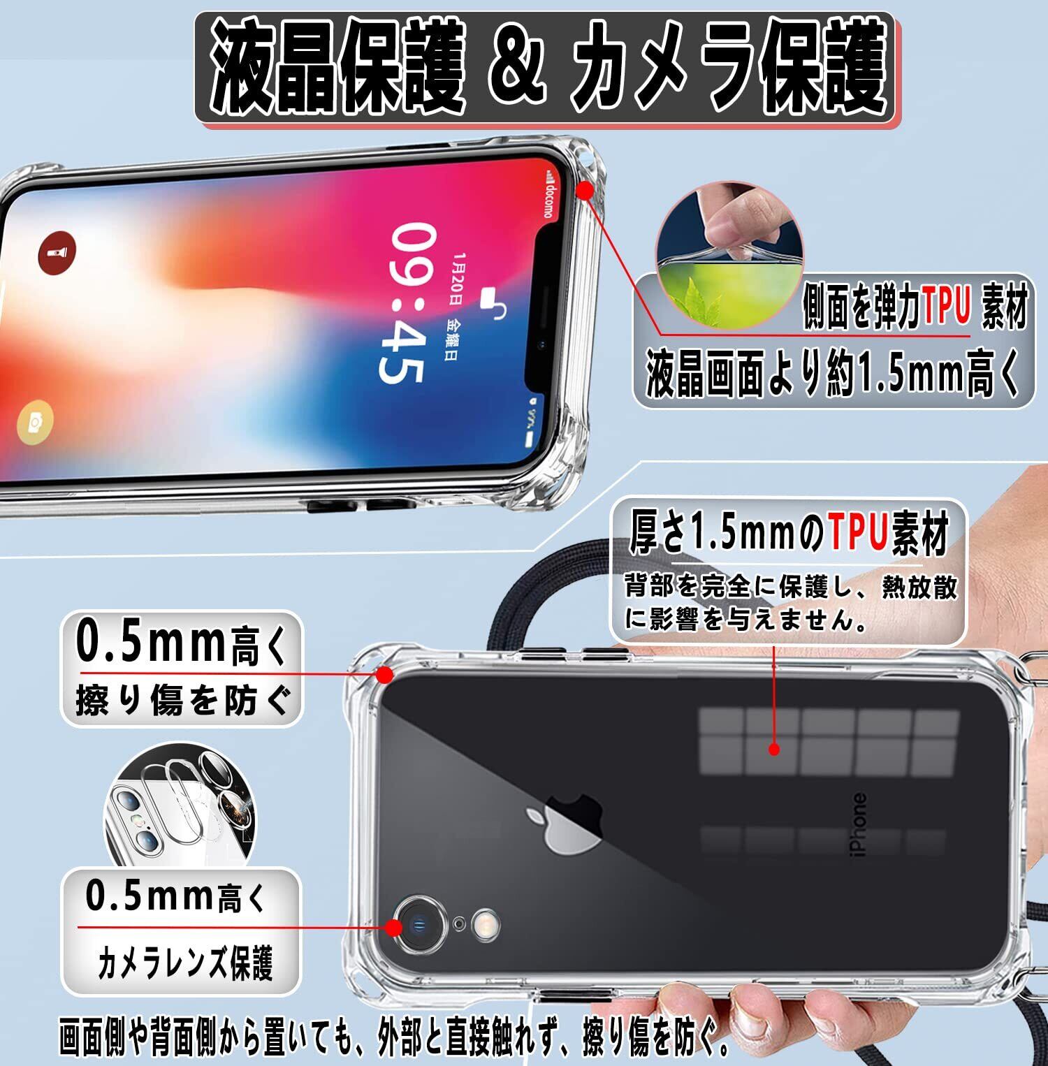 【透明で高品質TPUな素材 & マイクロドット加工 】透き通った99%高い透明度を持ちます。"TPU"のソフトな素材で衝撃を吸収させ、高透明率の高い特殊なTPU素材を持ち、黄ばみも付きにくい。薄くて丈夫で柔軟性が高く、程よいグリップ感があり、本体の持つスリムさをできる限り損なわないよう設計しています。着脱も簡単で、スマホ本体への擦り傷も心配無用です。また、ご自分でお気に入りの写真を背面パネル(ケース内側)に貼り付けることができます。本商品は端末に触れるケース裏側に極小さな微粒子上の突起処理を行い端末の発熱を軽減する散熱加工を行っております。 気泡の発生も防ぎます。