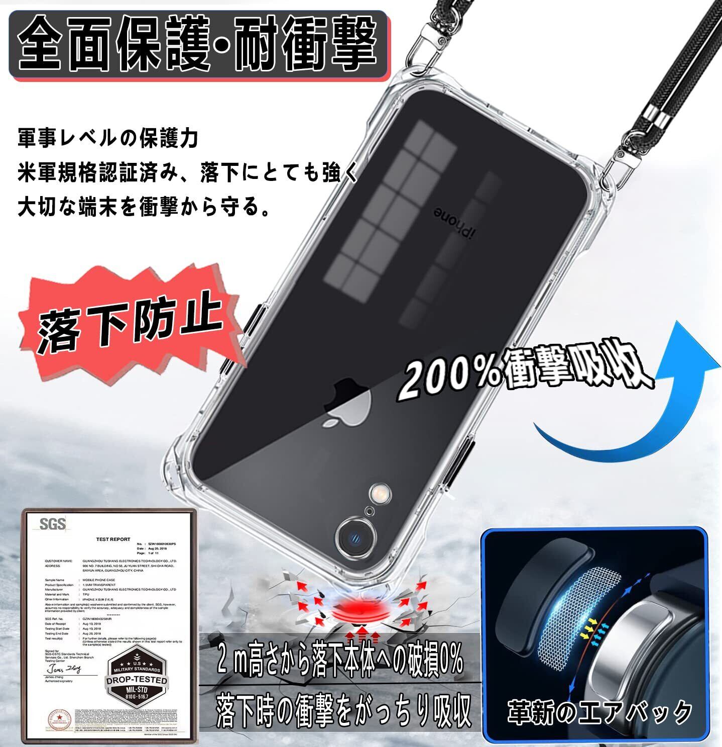 【耐衝撃 & 米軍MIL規格の取得】その耐衝撃性能は第三者機関の試験による米軍MIL規格をクリアするほど高いことが証明されております。iPhone XR ケースの四隅部分に"衝撃吸収テクノロジー"を採用し、これにより角からの衝撃を受けてもその隙間がクッションの様に本体への衝撃を吸収します。万が一スマホを落としてしまった場合でも、落下時のダメージを最小限に抑えることが可能となっており。